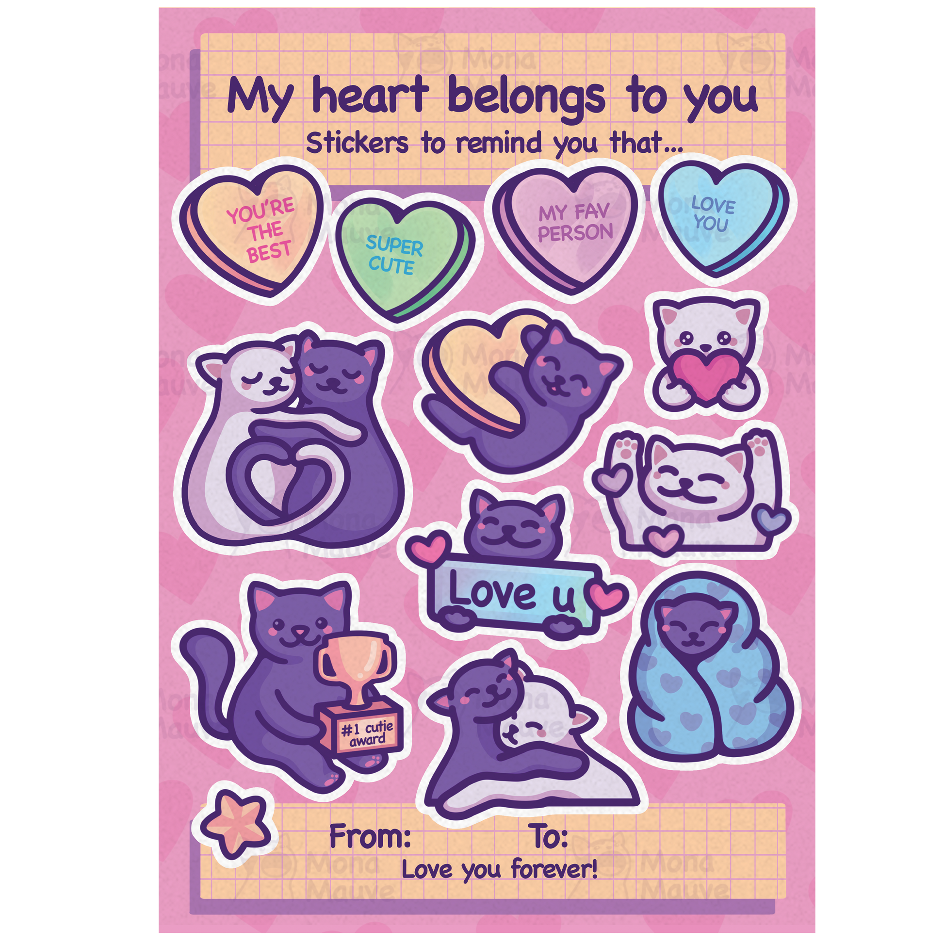 My heart belongs to you - a collection of the cutest cat stickers to remind your favourite person that you love them! 💕 Perfect for anniversaries or just because.