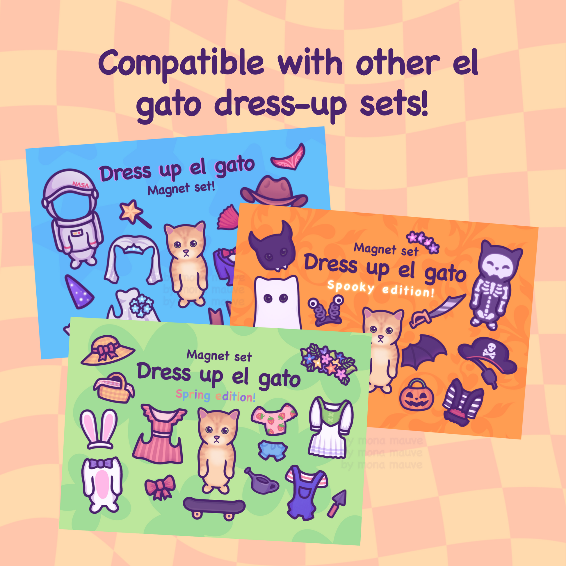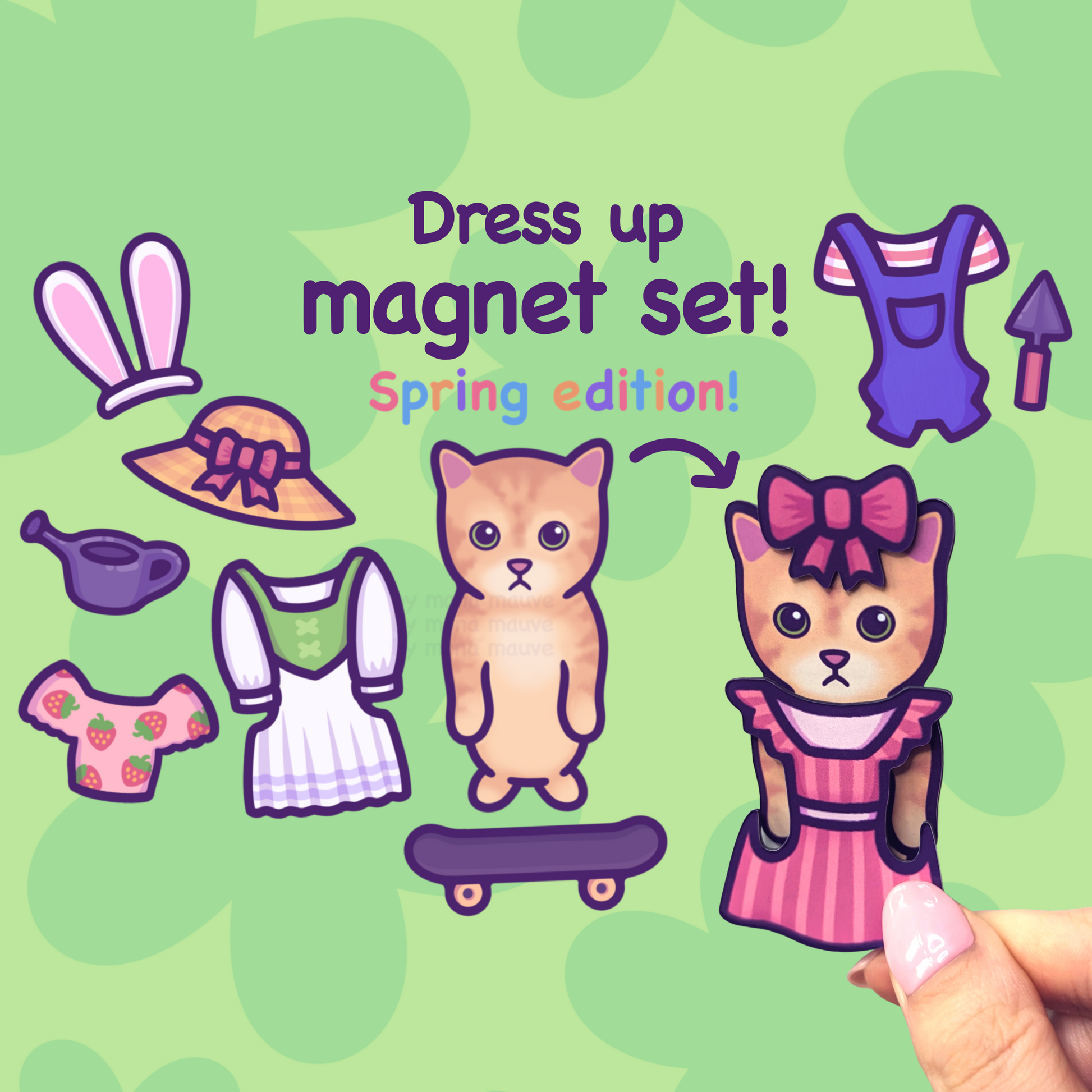 Cat Fridge Magnet Set - Spring Edition | Dress Up Game | El Gato & 6 Outfits