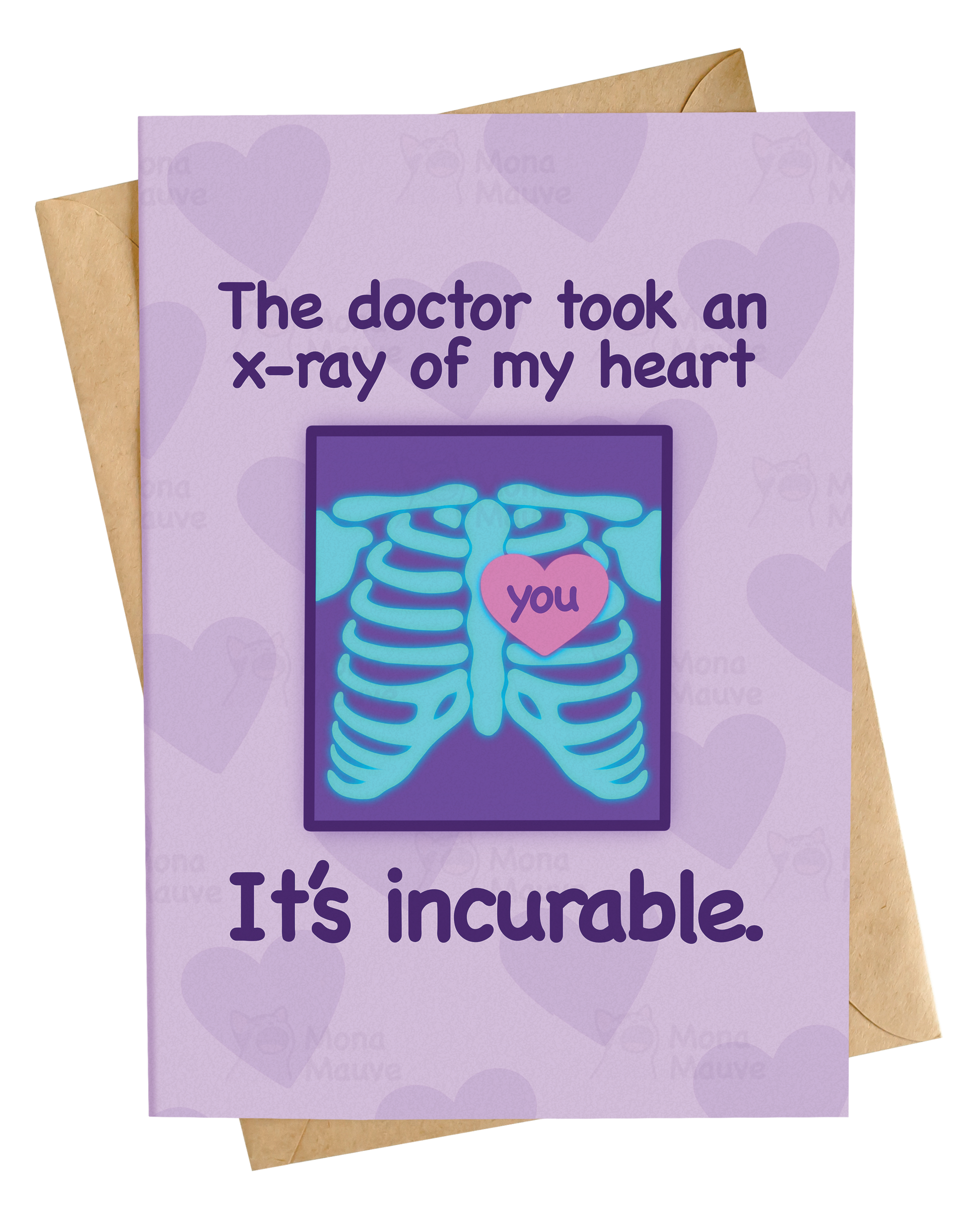 The doctor took an x-ray of my heart - my love for you is incurable! 😩 A funny card to remind your significant other that they're loved, whether that's on your anniversary, or just because!