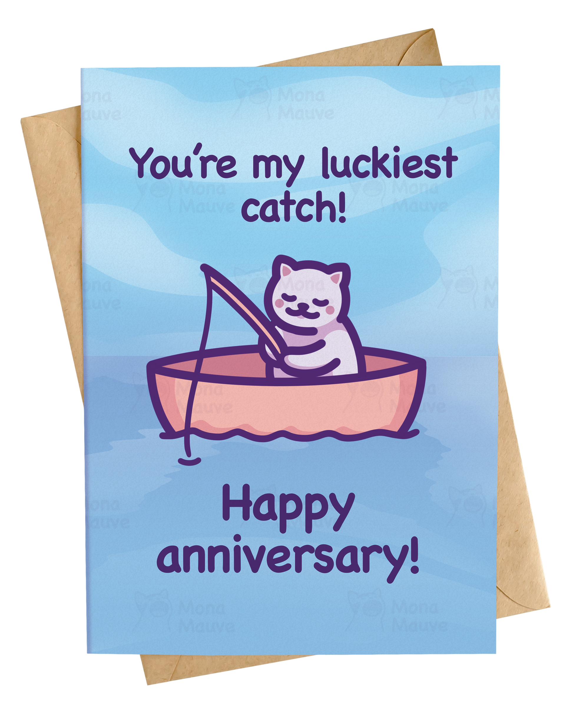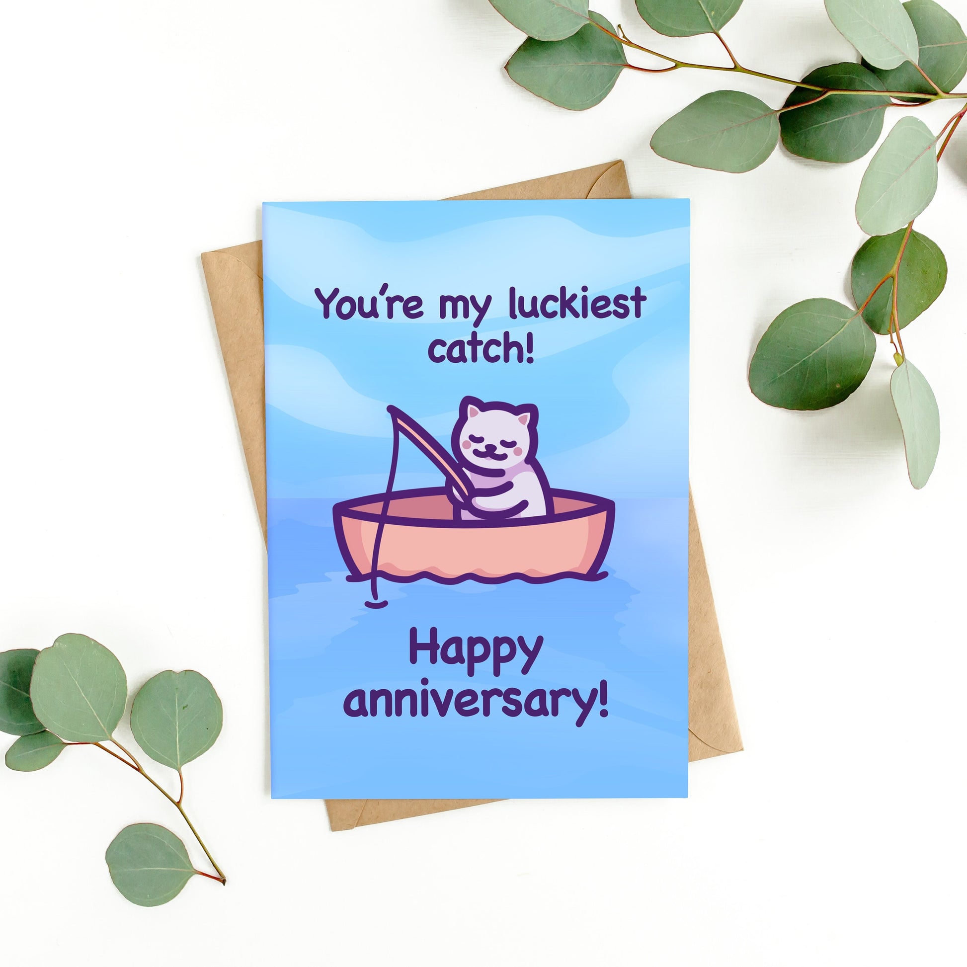 A cute cat card for your luckiest catch to remind them how much they mean to you on your anniversary or any other special occasion! 🎣