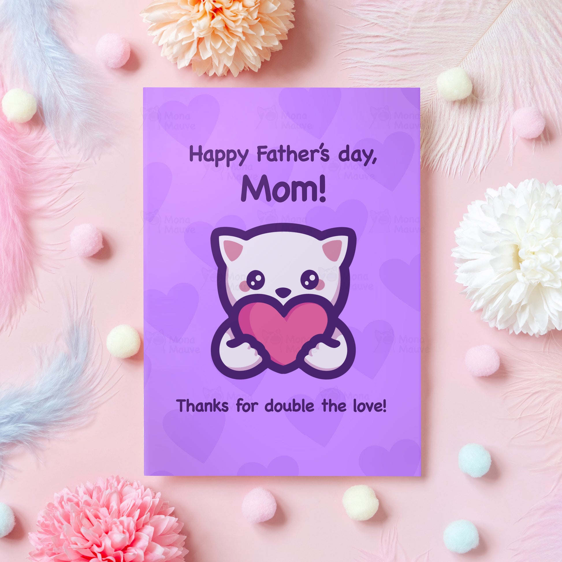 Sometimes moms have to take on an extra role, and we appreciate them for that! 🩷 Express your love and gratitude to your mom on Father's day with this adorable card! Spellings 'mom' and 'mum' are available :)