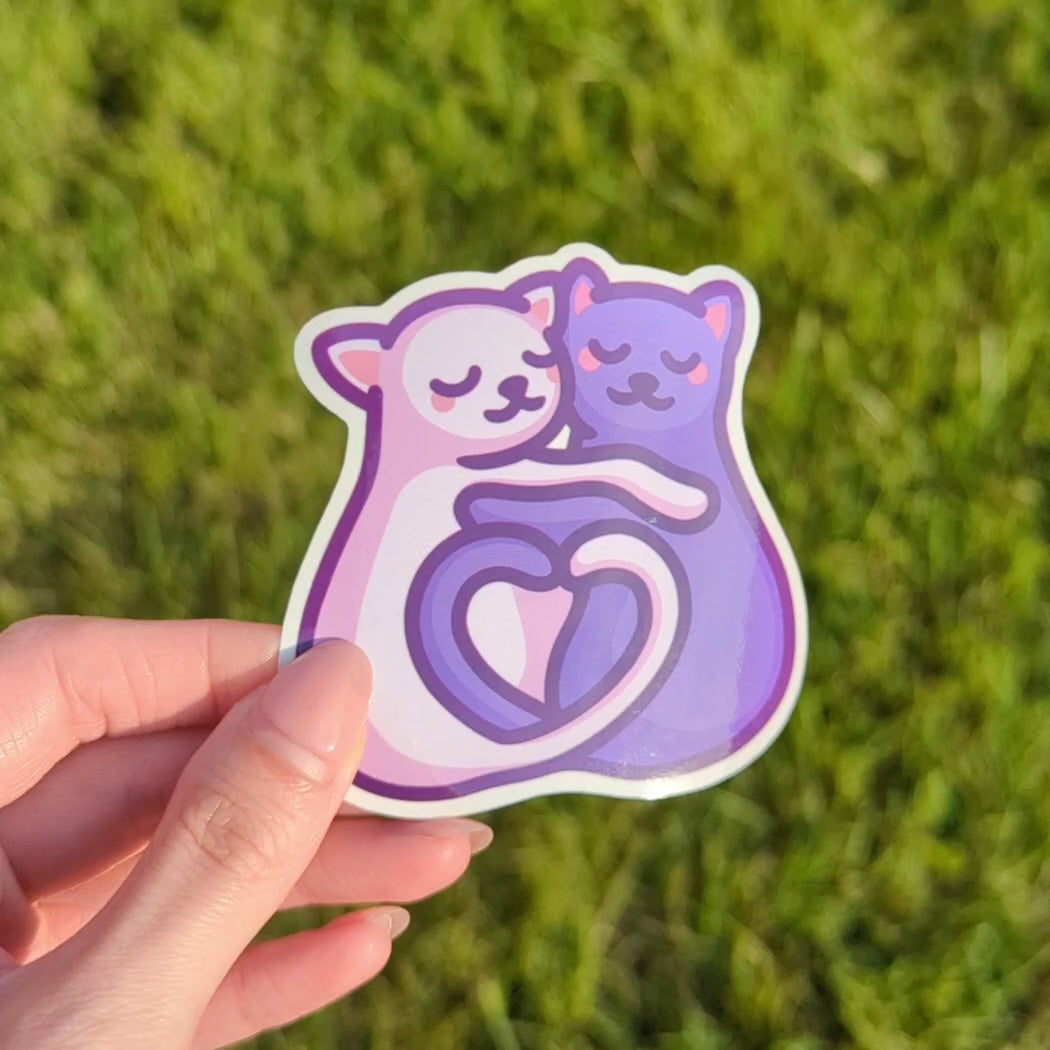 Cute Cat Love Vinyl Sticker | Cat Tails Making a Love Heart