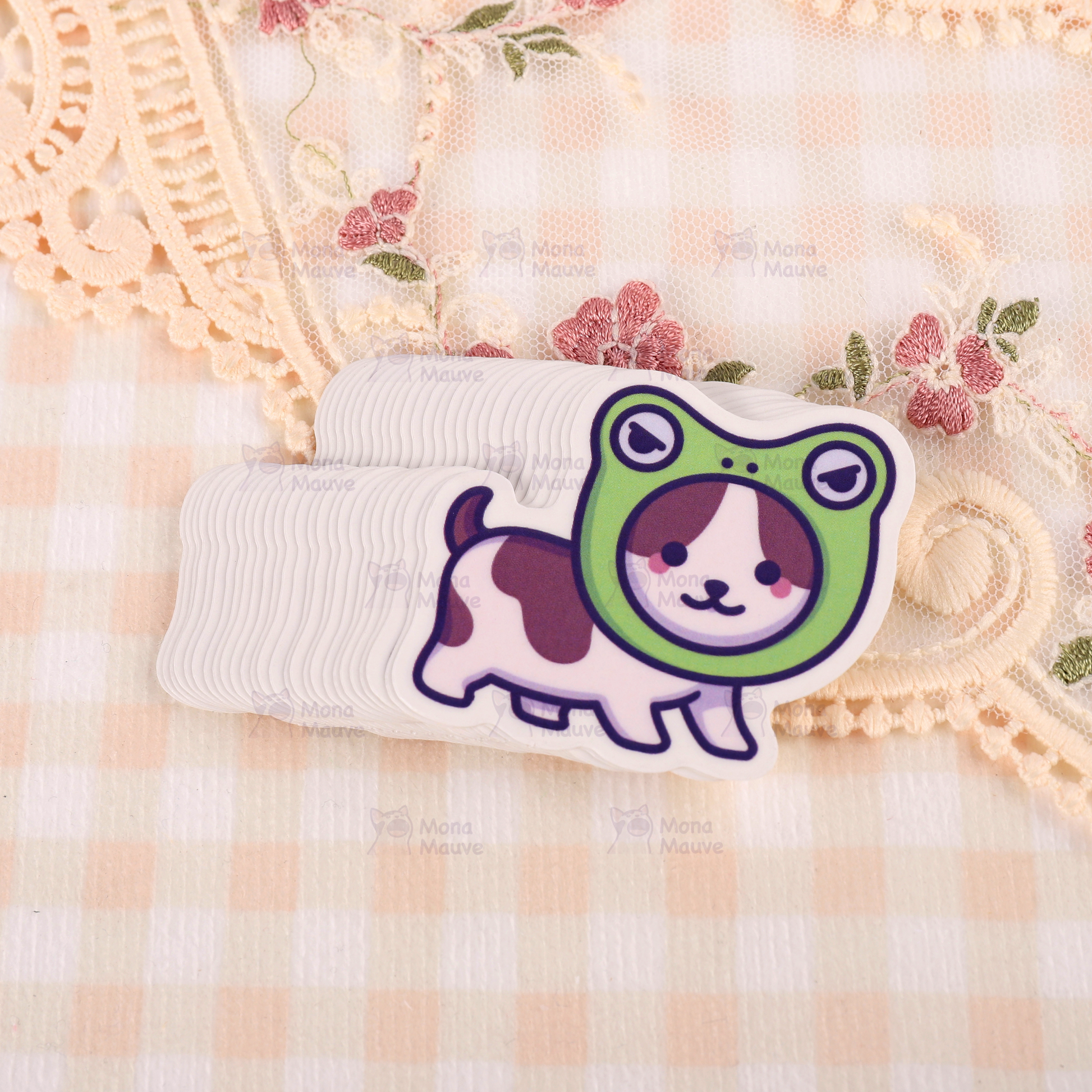 Cute Cat Meme Vinyl Sticker | Cat in a Frog Hat