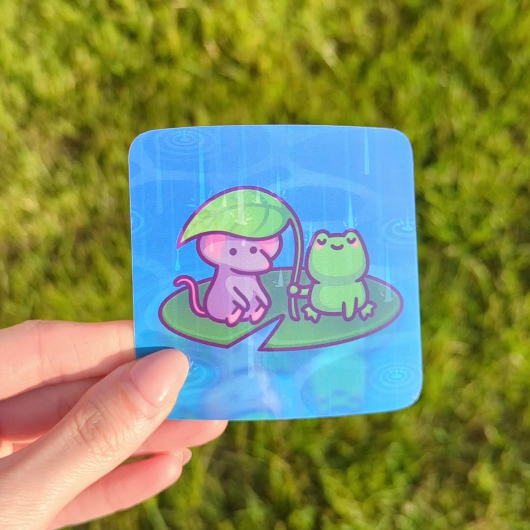 Cute Frog Vinyl Sticker | Frog & Mouse on a Lily Pad