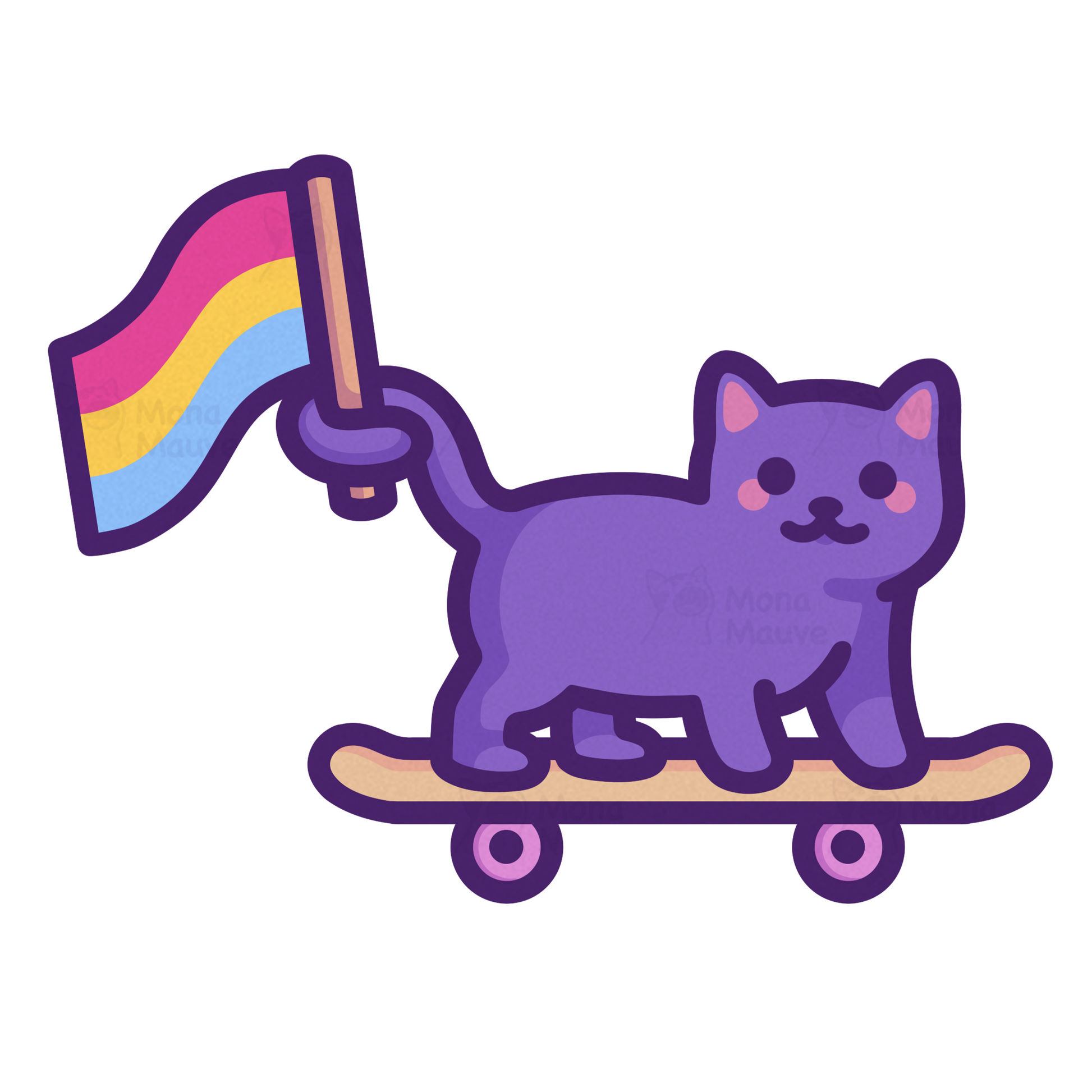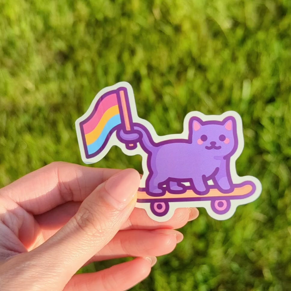 Cute Pansexual Pride Sticker | Cat on Skateboard with Pan Flag