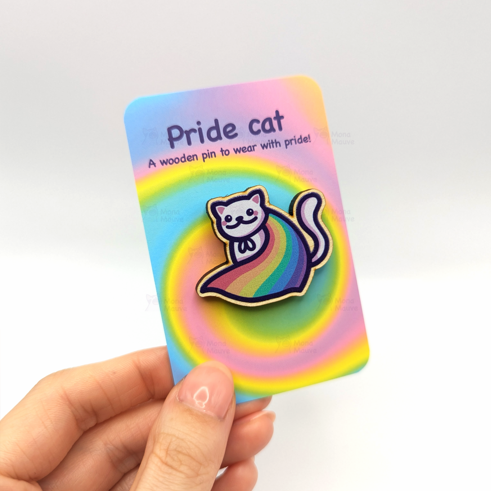 Wear this pride cat wooden badge with pride! 🌈 The cutest way to show off your pride, or great as a gift! Wooden badges are a much more sustainable alternative to enamel pins! 🌎