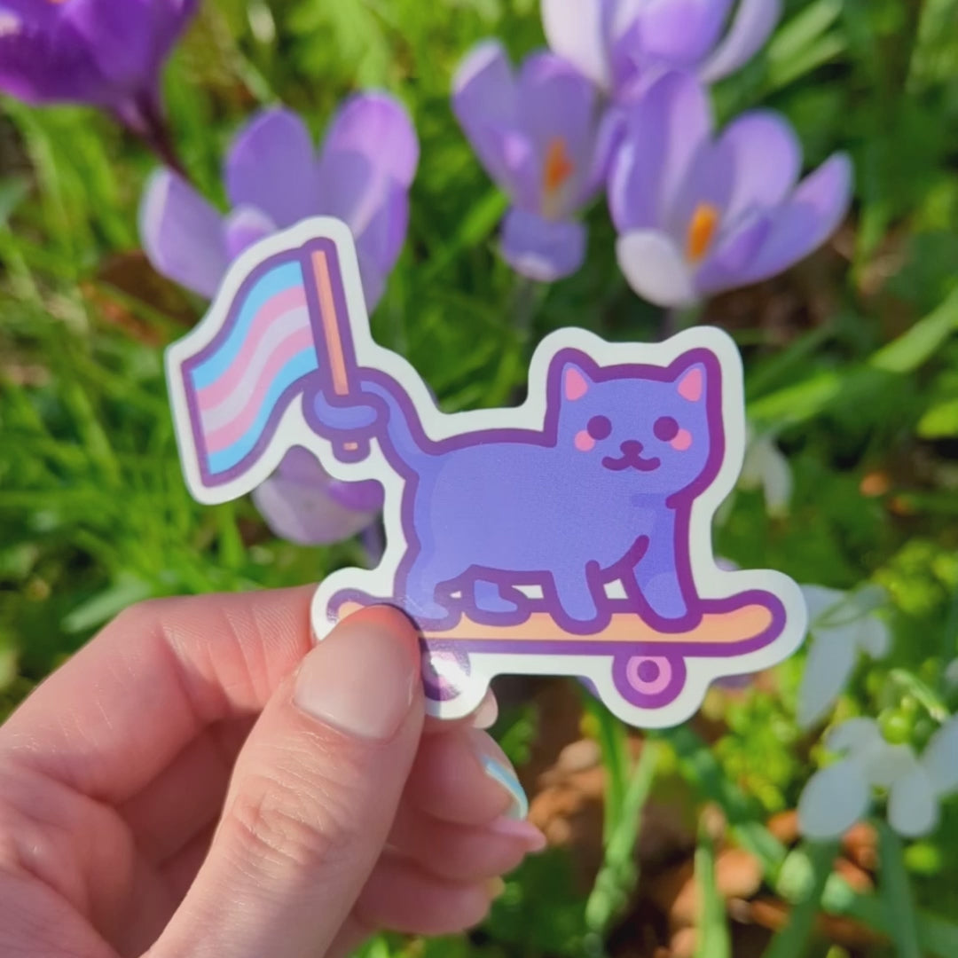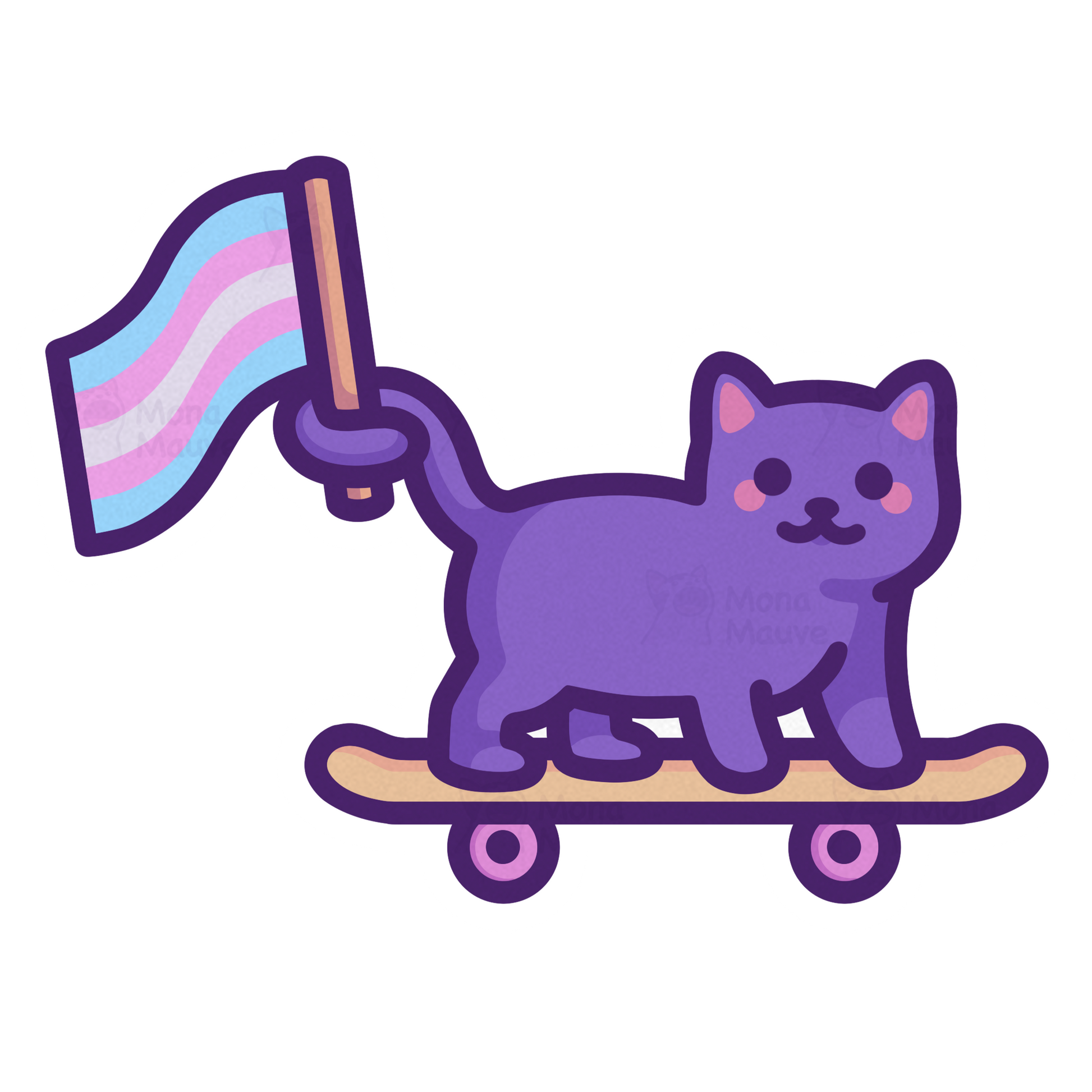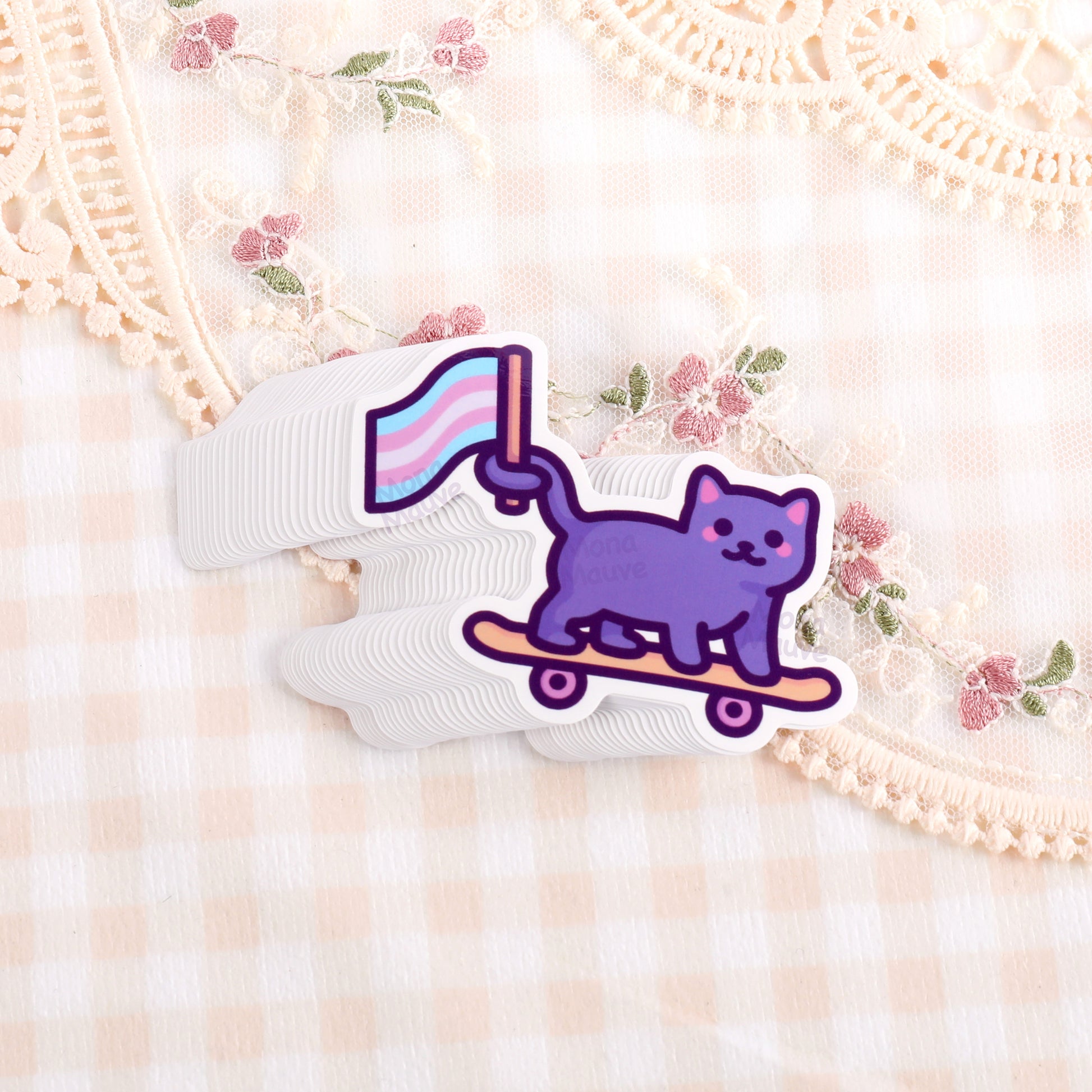 Cute Trans Pride Sticker | Trans Flag Cat on Skateboard