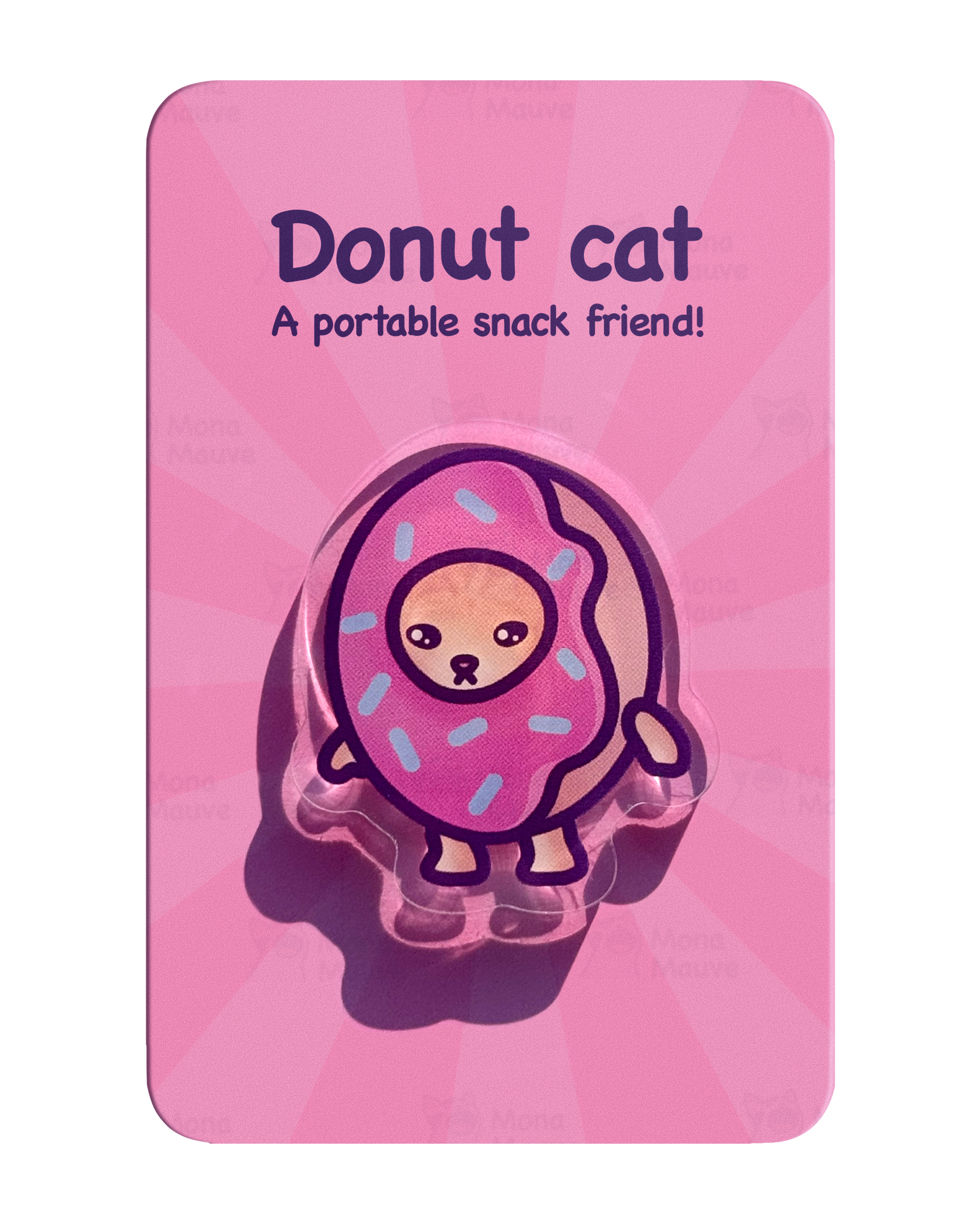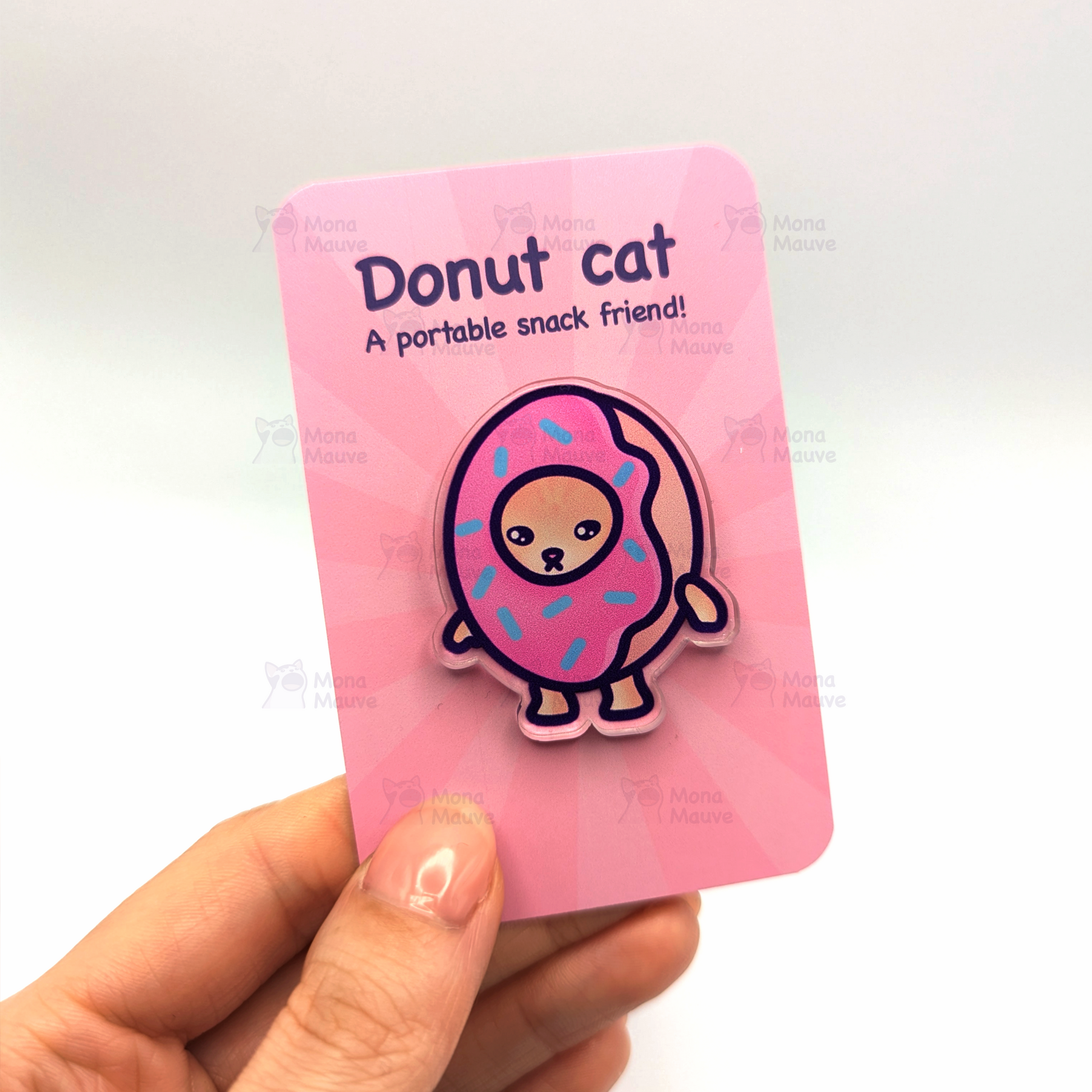 Donut Cat Pin | Snack Cats Collection | 40mm Acrylic Badge Butterfly Clutch