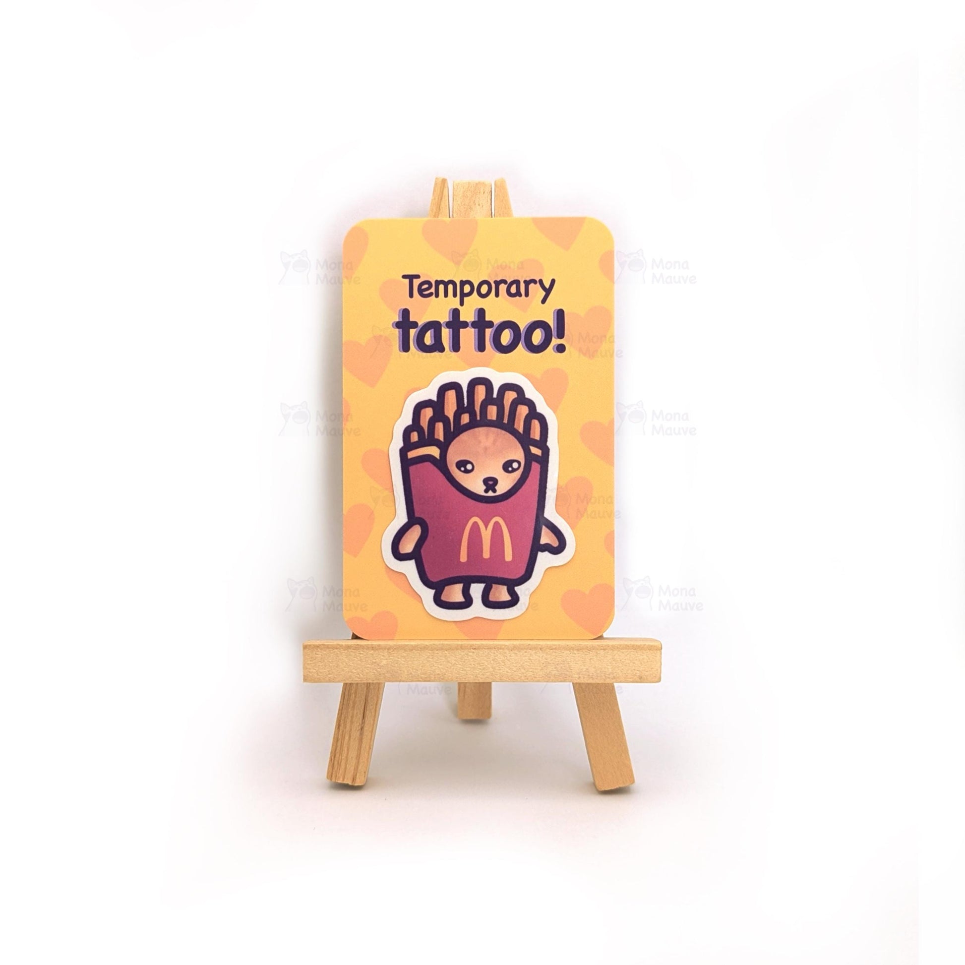 Fries cat TEMPORARY TATTOO! 🙀 Add this silly little guy to your look no matter the occasion - birthdays, parties, festivals, or just any ordinary day! 🌞 Great as a Christmas stocking filler or a gift!