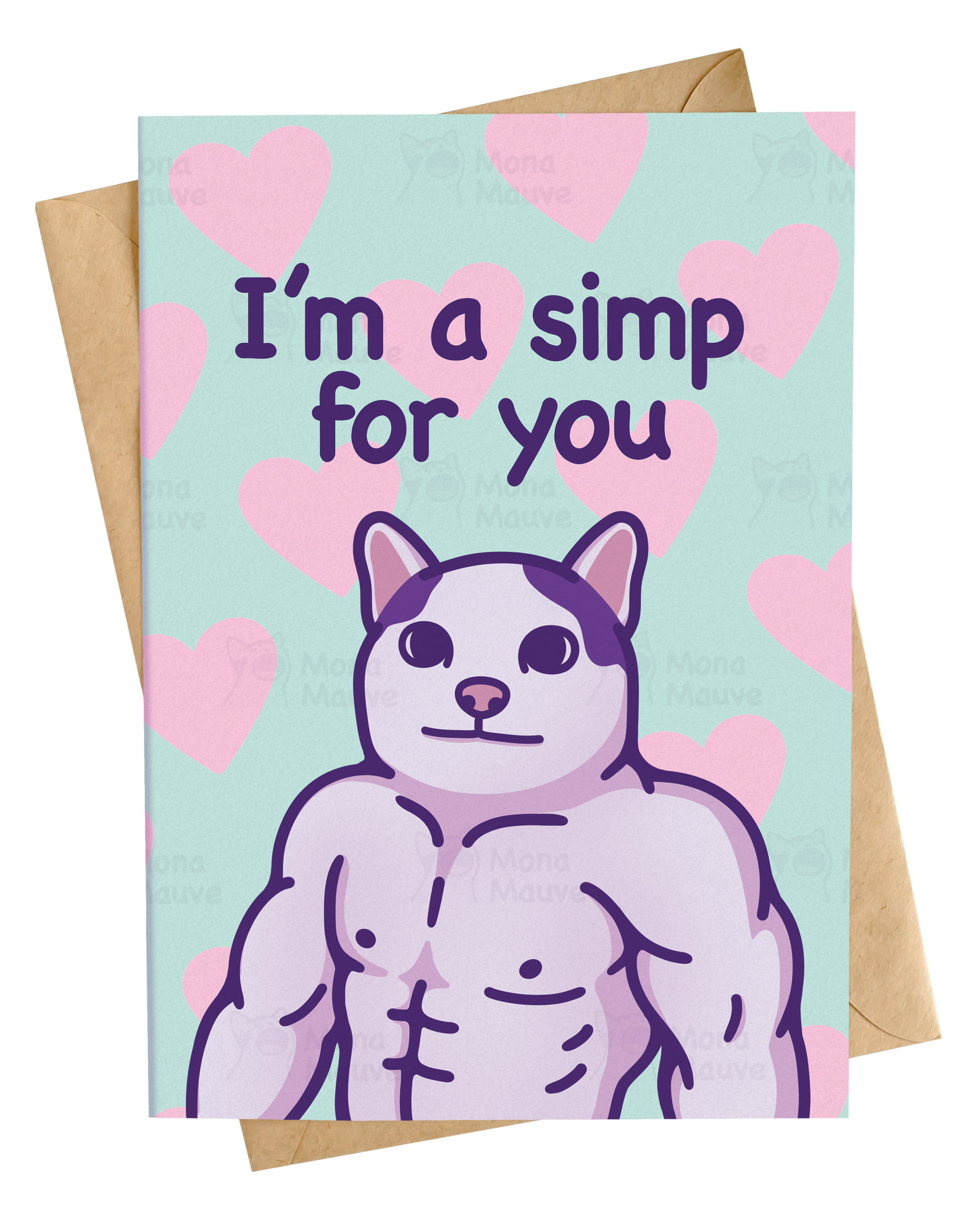 I'm a simp for you! 💪😼 Get this ridiculous cat meme anniversary card to make sure your loved one knows you're their #1 fan!