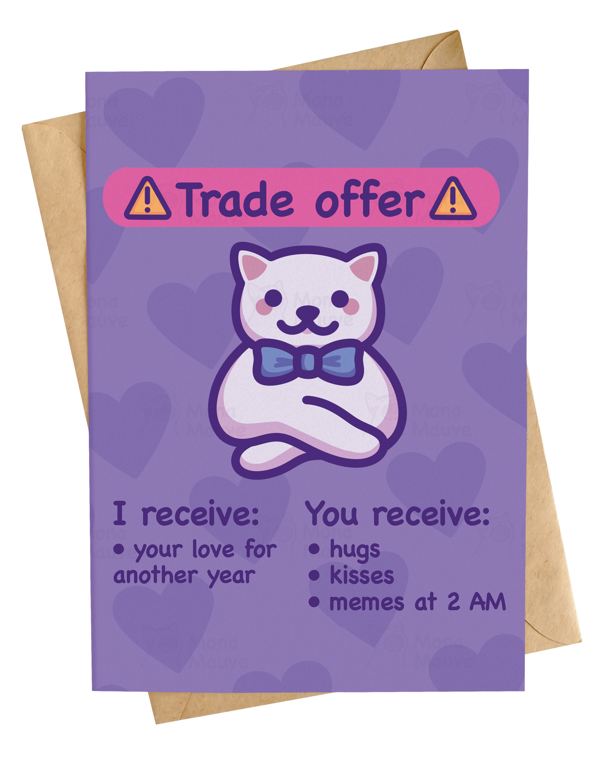 ⚠️Trade offer!⚠️Surely the best trade deal in all history? A funny & cute cat meme anniversary card to celebrate another year together. 🐱
