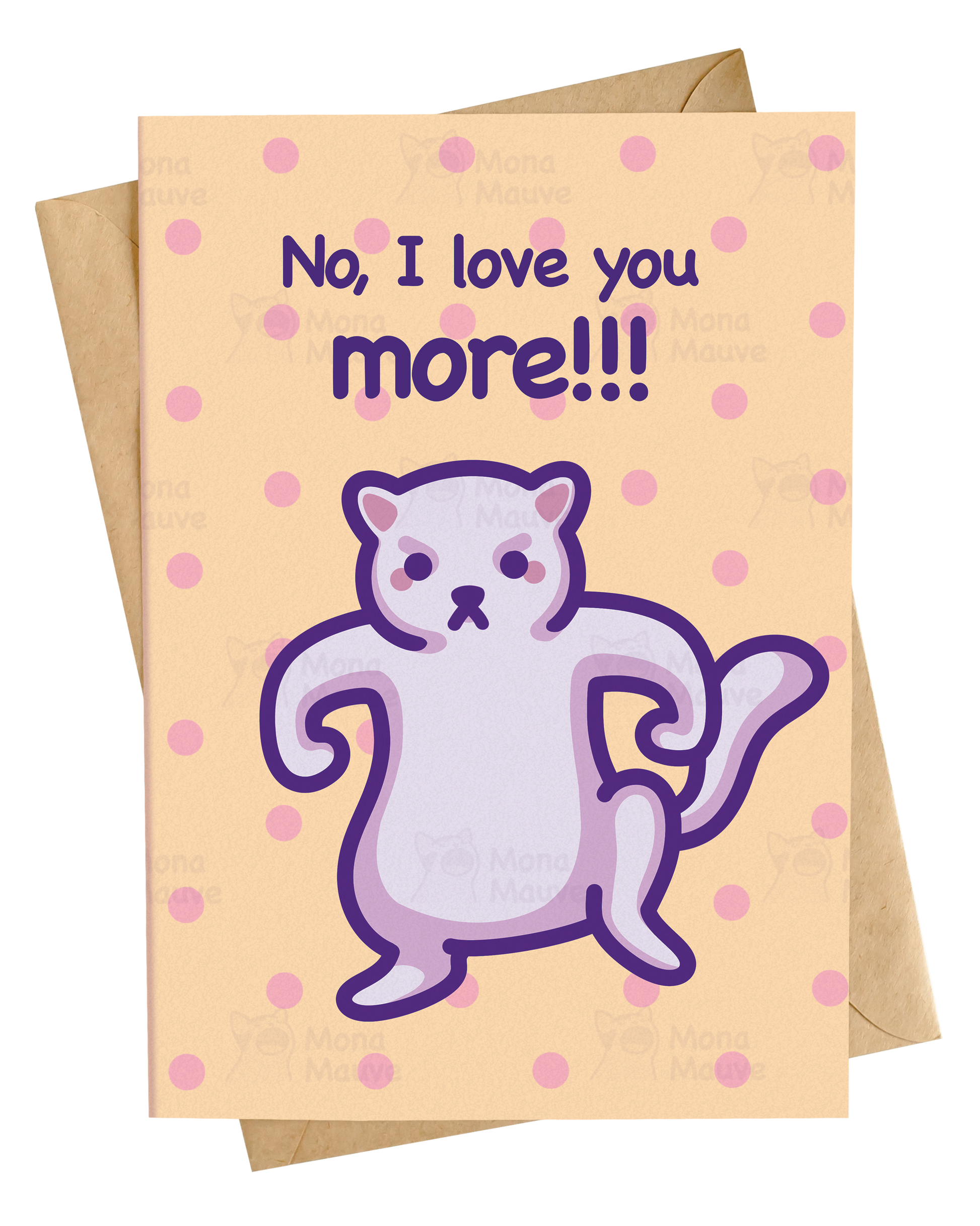 No, I love you more!! 😤 A funny cat card to settle the age-old argument once and for all!