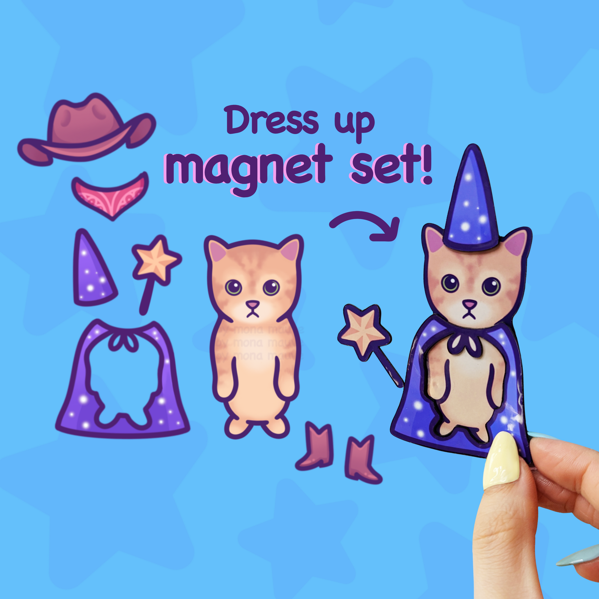 Funny Cat Fridge Magnet Set | Dress Up Game | El Gato & 6 Outfits