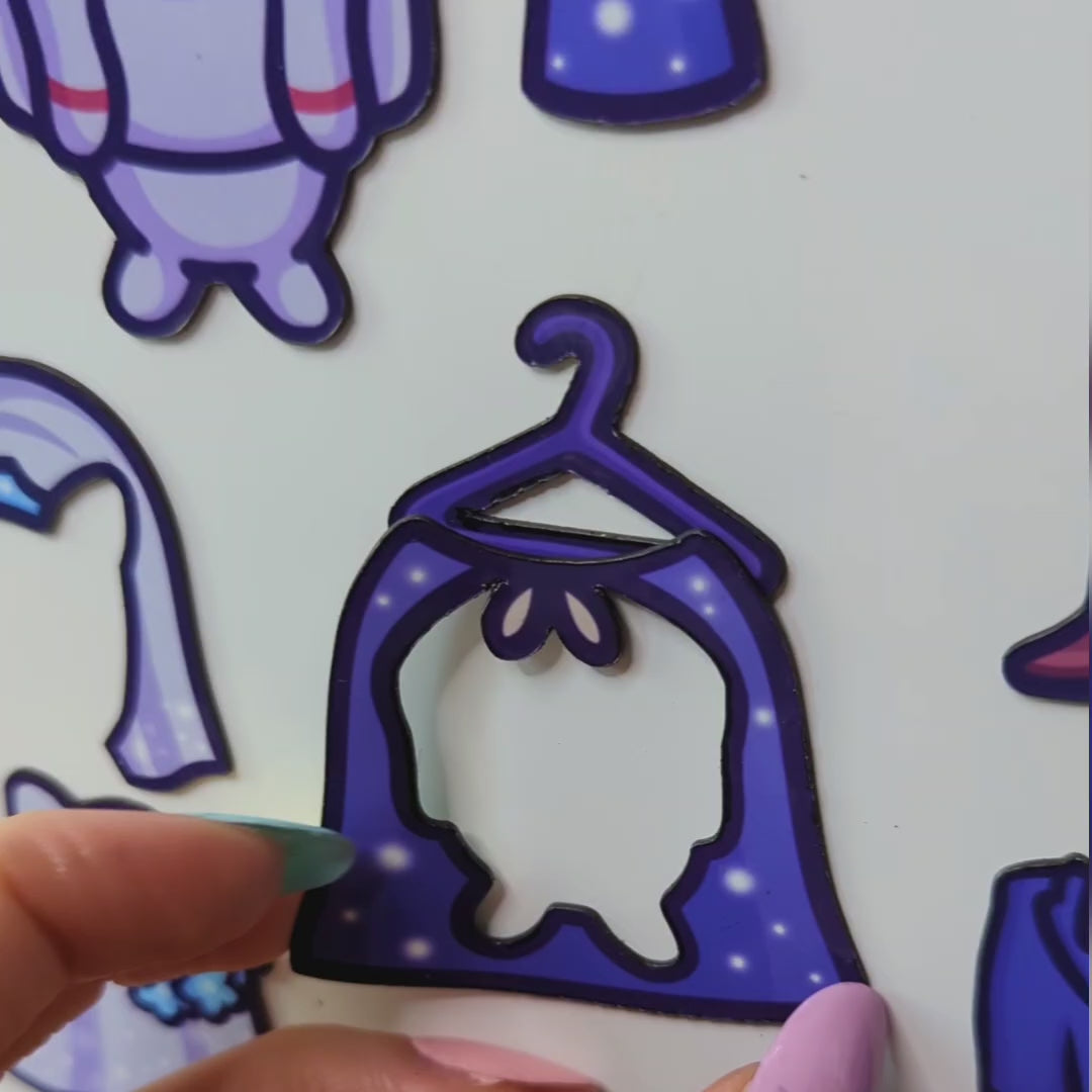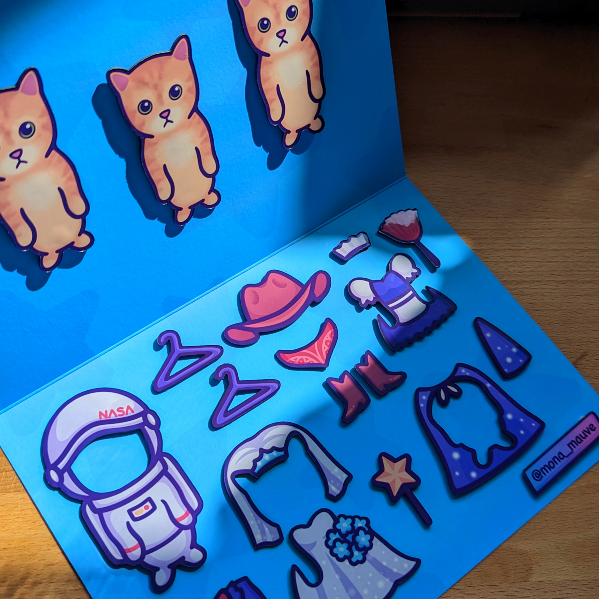 - Includes six outfits (cowboy, maid, wizard, astronaut, bride and a fancy tuxedo) that can be added on top of/removed from the cat magnet