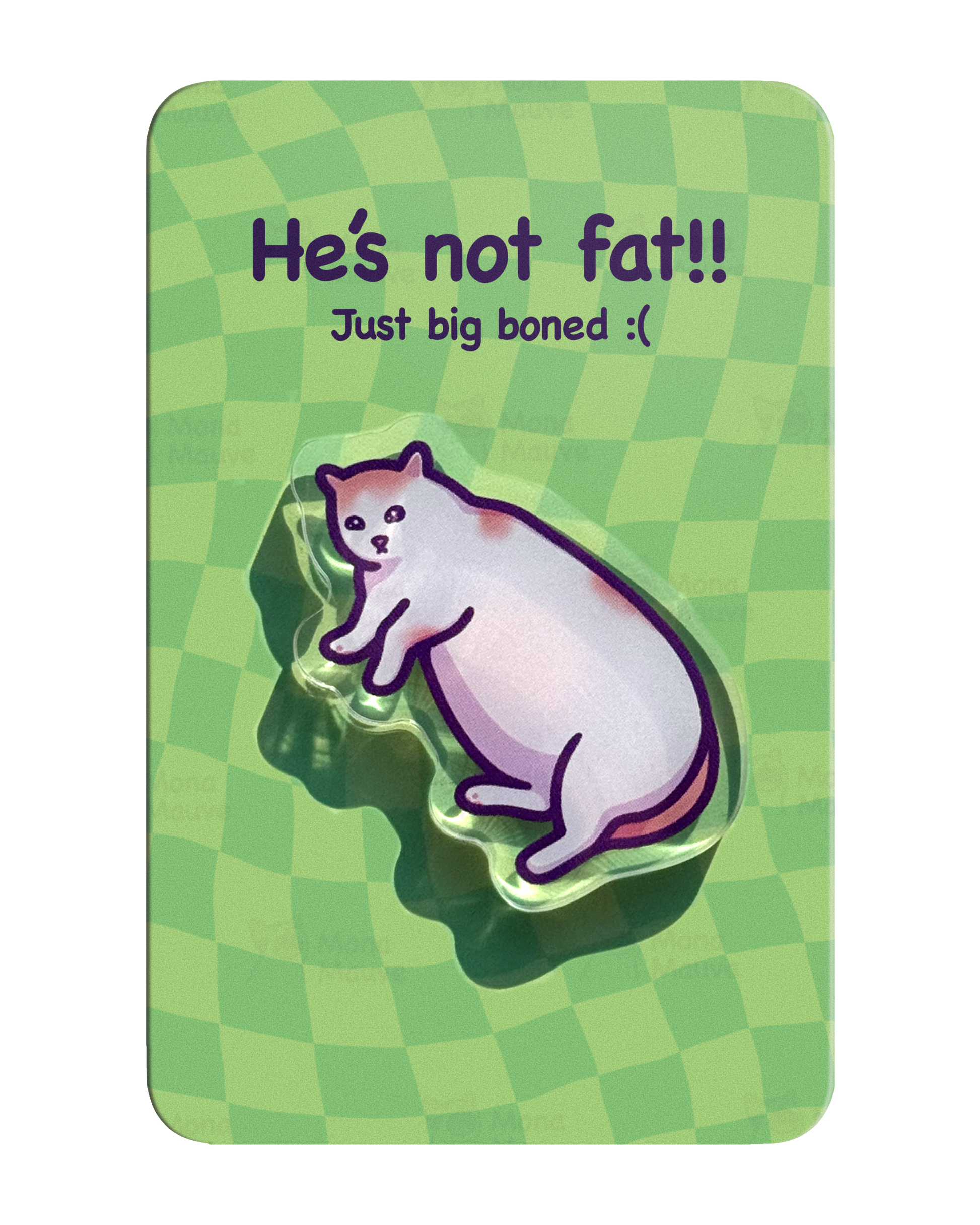 He's Not Fat, Just Big Boned | Funny Cat Meme Acrylic Pin