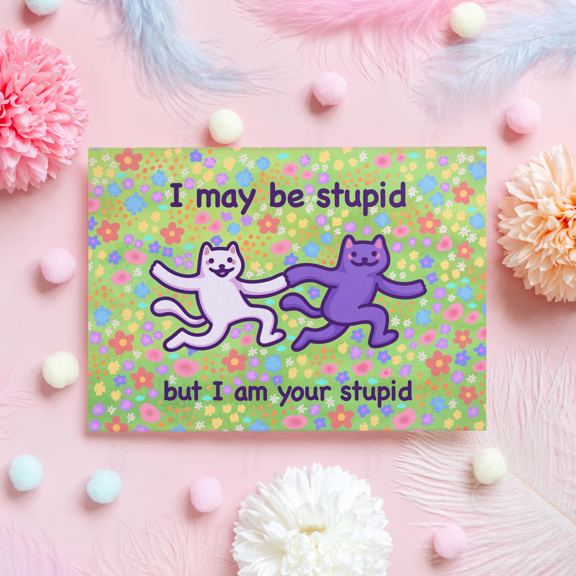 Funny Cat Meme Anniversary Card | I Am Your Stupid