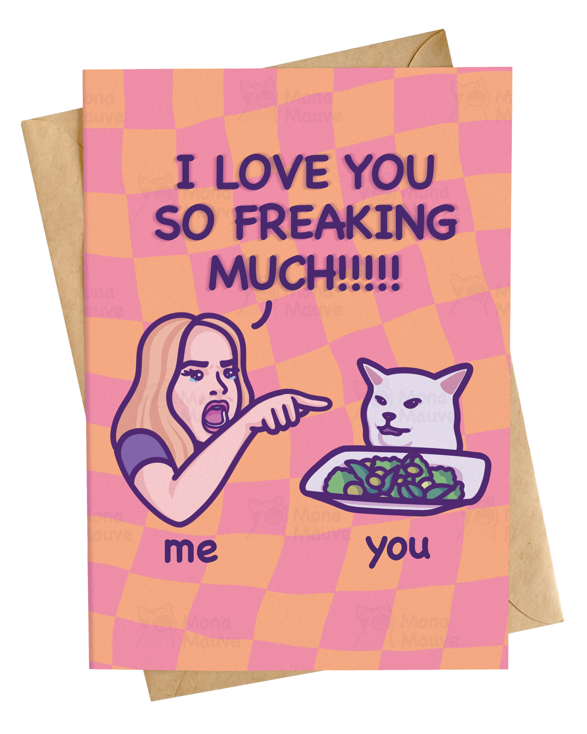 I LOVE YOU SO FREAKING MUCH!!! - a funny & adorable card to express love to someone whose love language is cat memes! Perfect for anniversaries or just because!