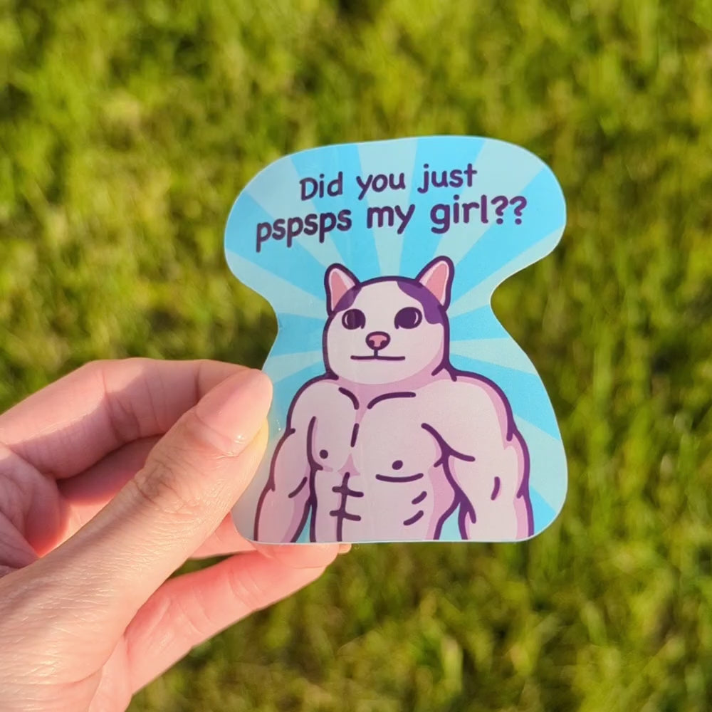 Funny Cat Meme Vinyl Sticker | Did You Just Pspsps My Girl??