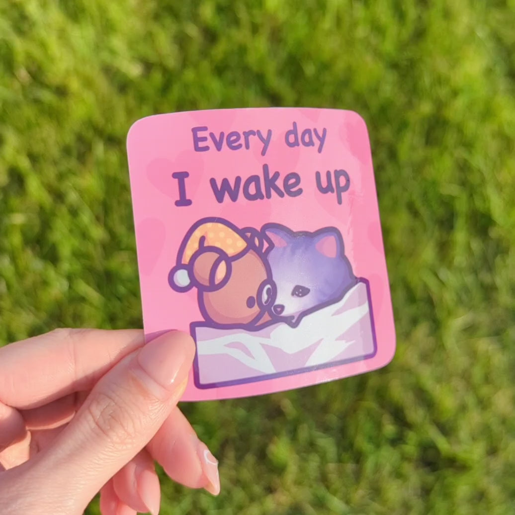 Funny Cat Meme Vinyl Sticker | Every Day I Wake Up