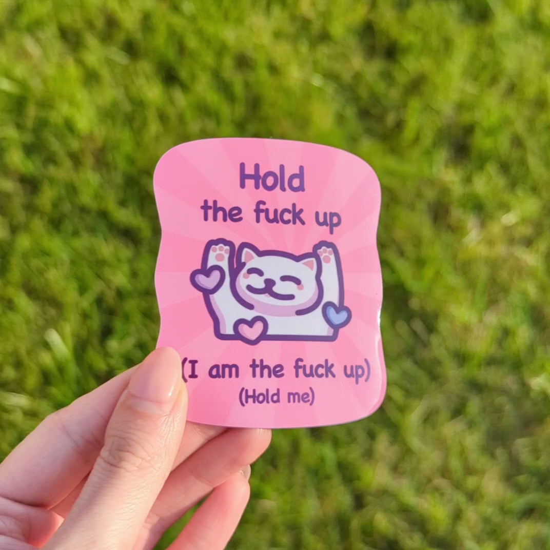 Funny Cat Meme Vinyl Sticker | Hold Me