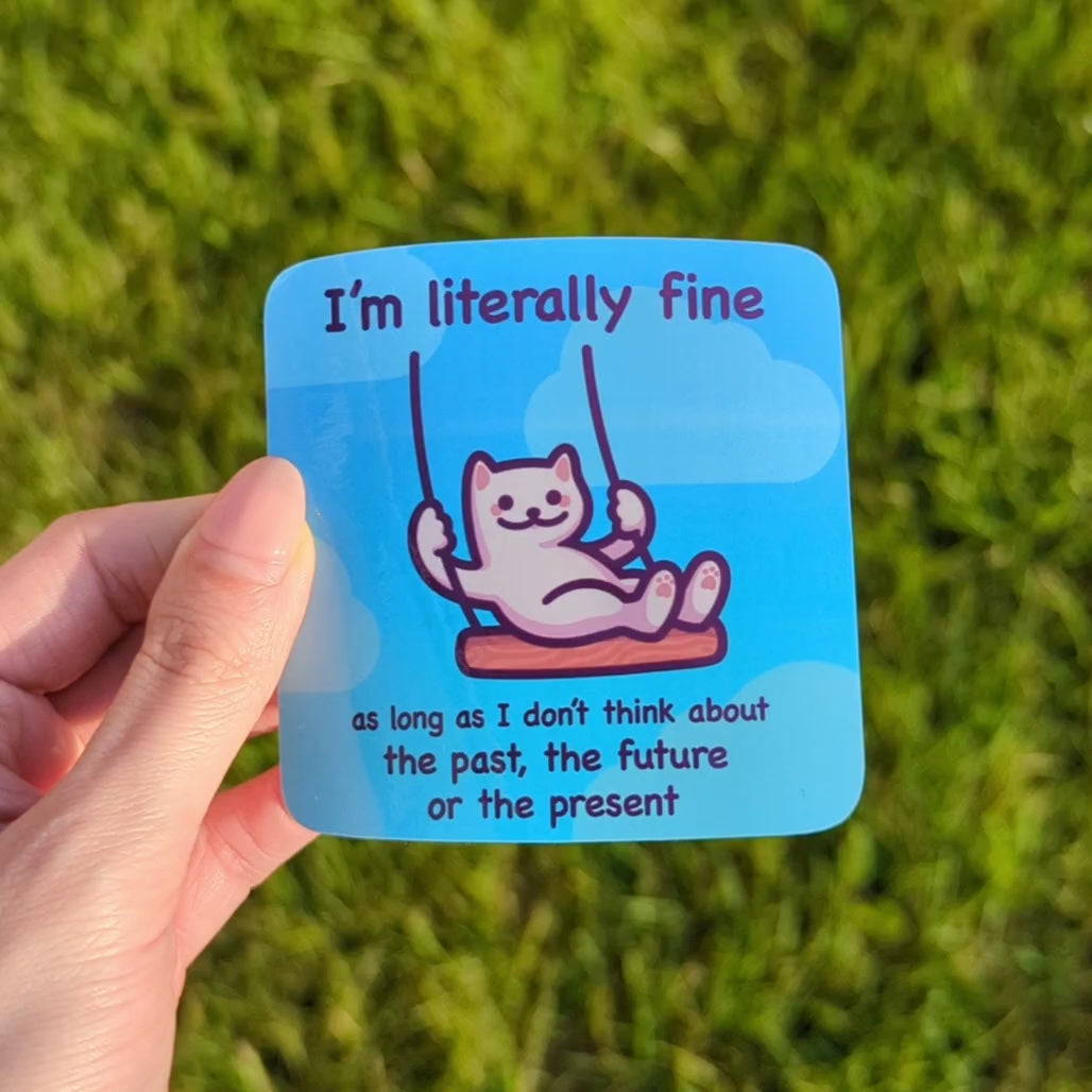 Funny Cat Meme Vinyl Sticker | I'm Literally Fine
