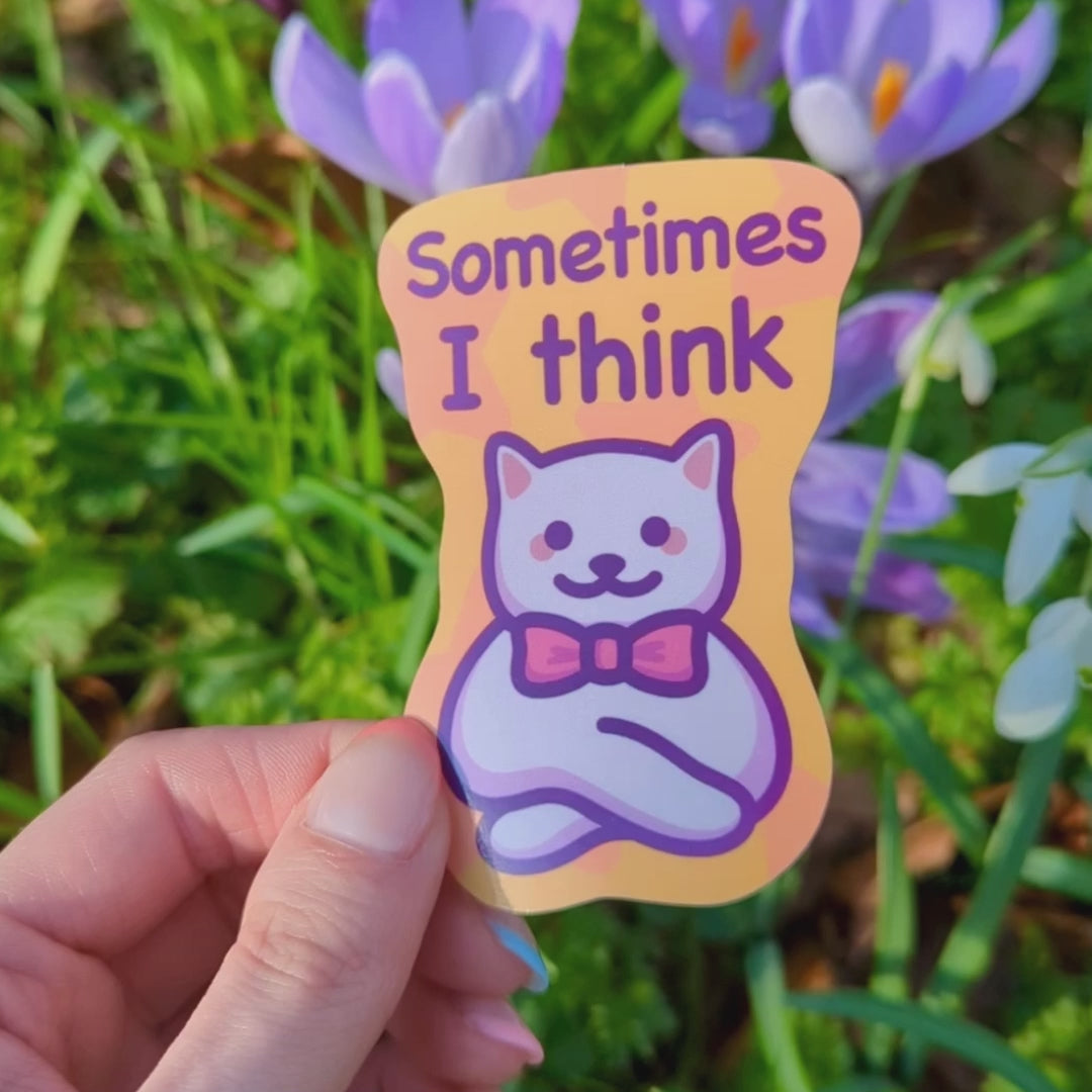 "Sometimes I think" vinyl sticker - a cat meme waterproof sticker great for decorating your water bottle, laptop, notebooks, or anything else that needs a bit more ✨pizzazz!✨