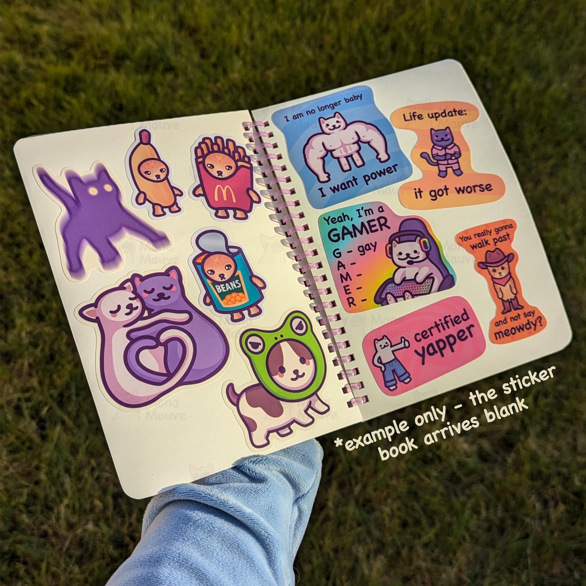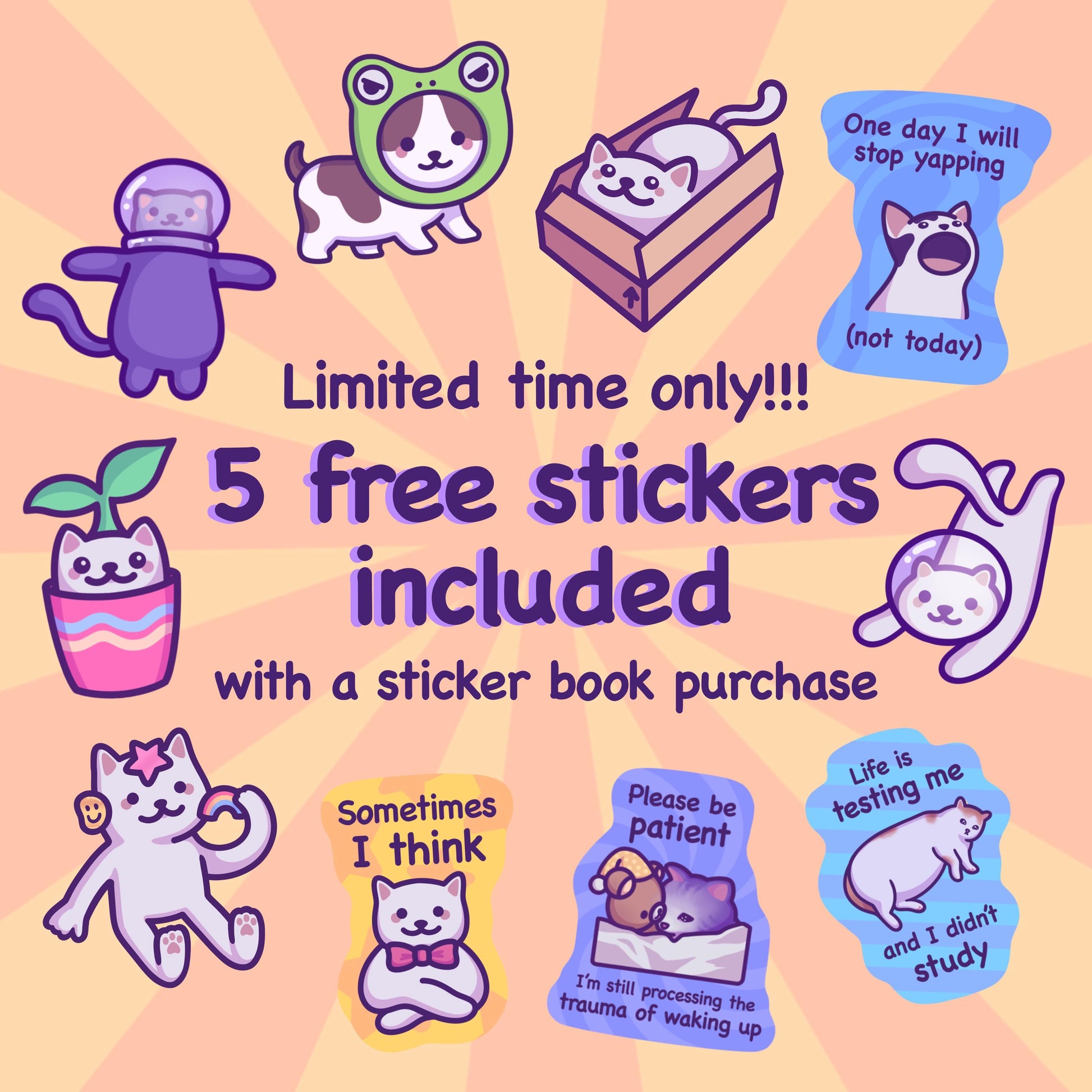 Finally, a home for your epic sticker collection! Instead of losing your stickers in a drawer somewhere, you can house them in this cool reusable sticker book 😺💖 As a special promotion, I'm currently including 5 random stickers from my shop FOR FREE!! 🌞