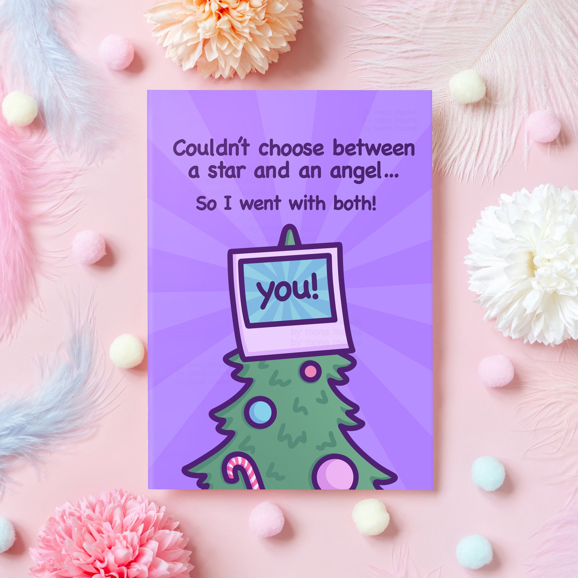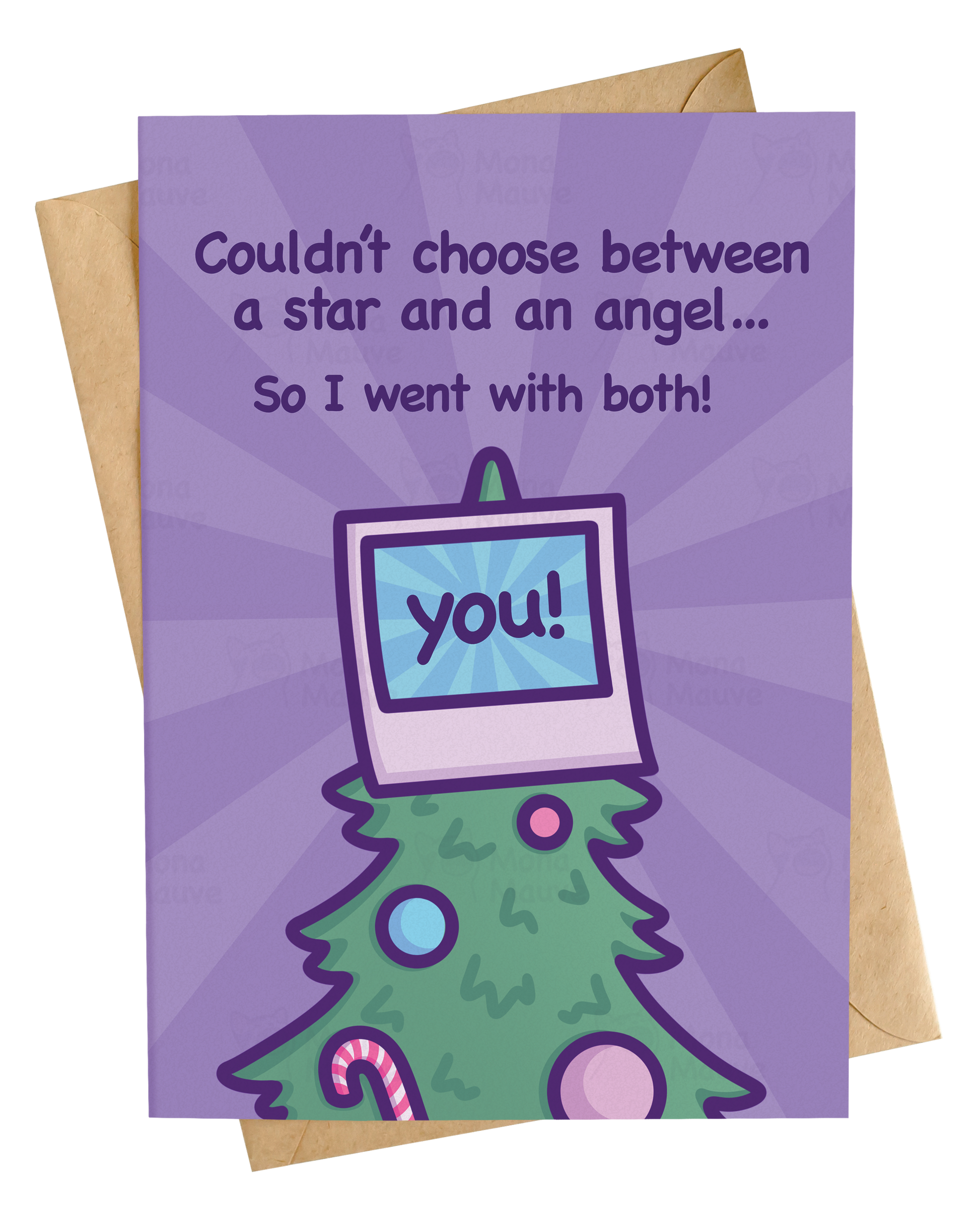 "Couldn't choose between a star and an angel, so I went with both!" - a cute Christmas card to make your loved one smile this holiday season! 🎄🎅