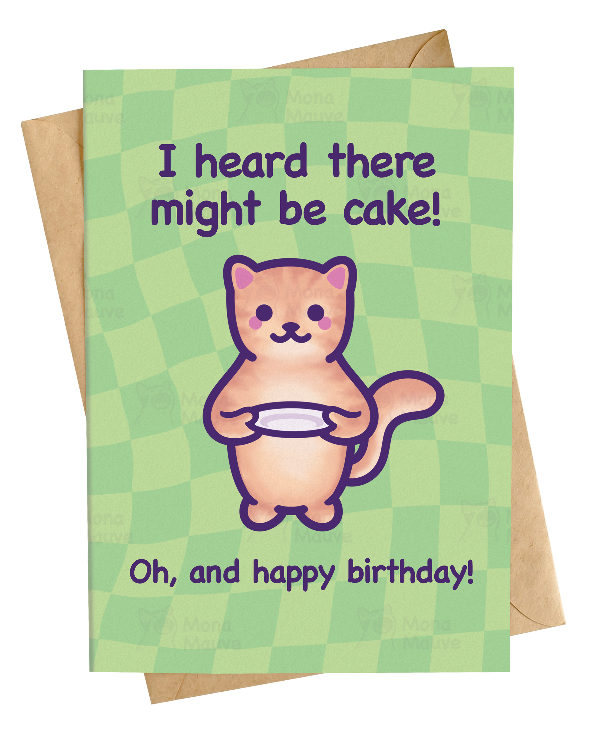 I Heard There Might Be Cake! Oh, and happy birthday! 🎂 A funny and cute birthday card to make the birthday girl/boy/NB smile on their special day.