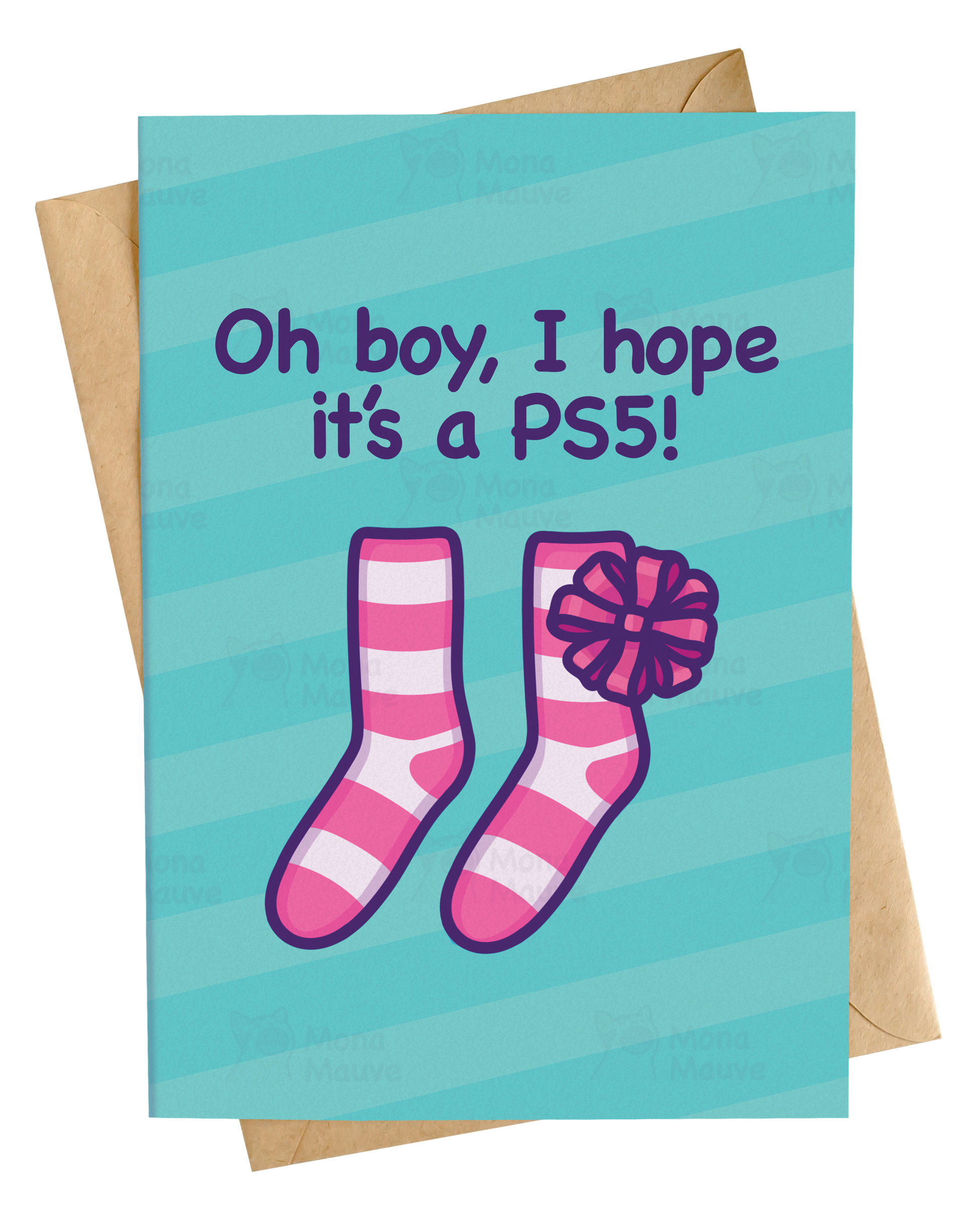 "Oh boy, I hope it's a PS5!" (it wasn't a PS5 😔) - a funny Christmas card for someone who's getting socks this year (again)! 🎄