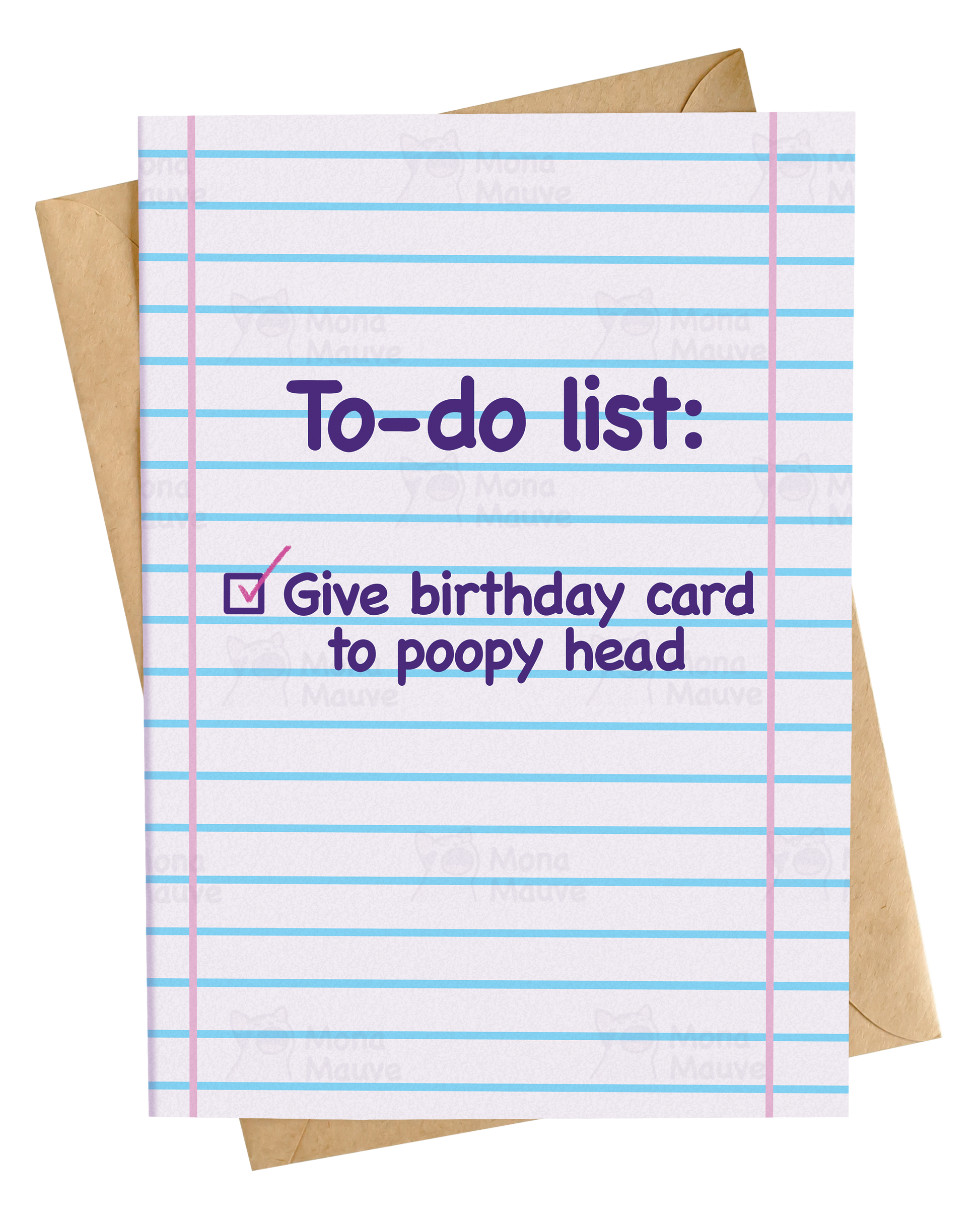 Offensive Birthday Card | To-do: Give Birthday Card to Poopy Head
