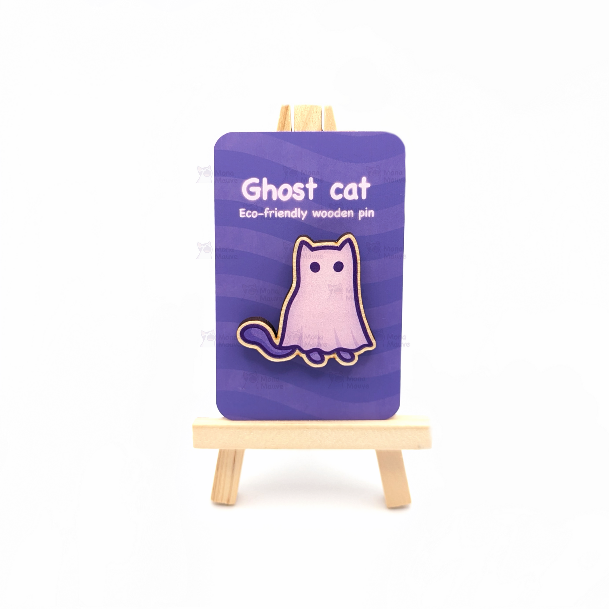 Ghost Cat Pin Badge | Cute Halloween Wooden Pin