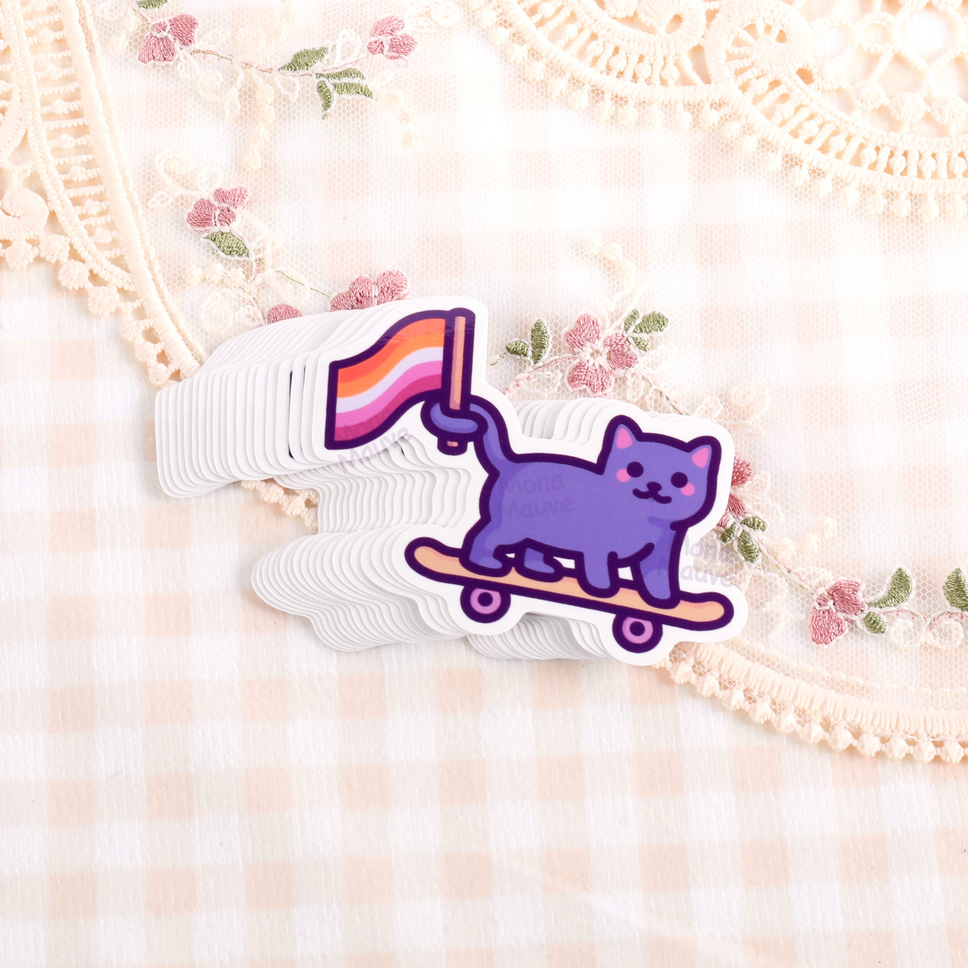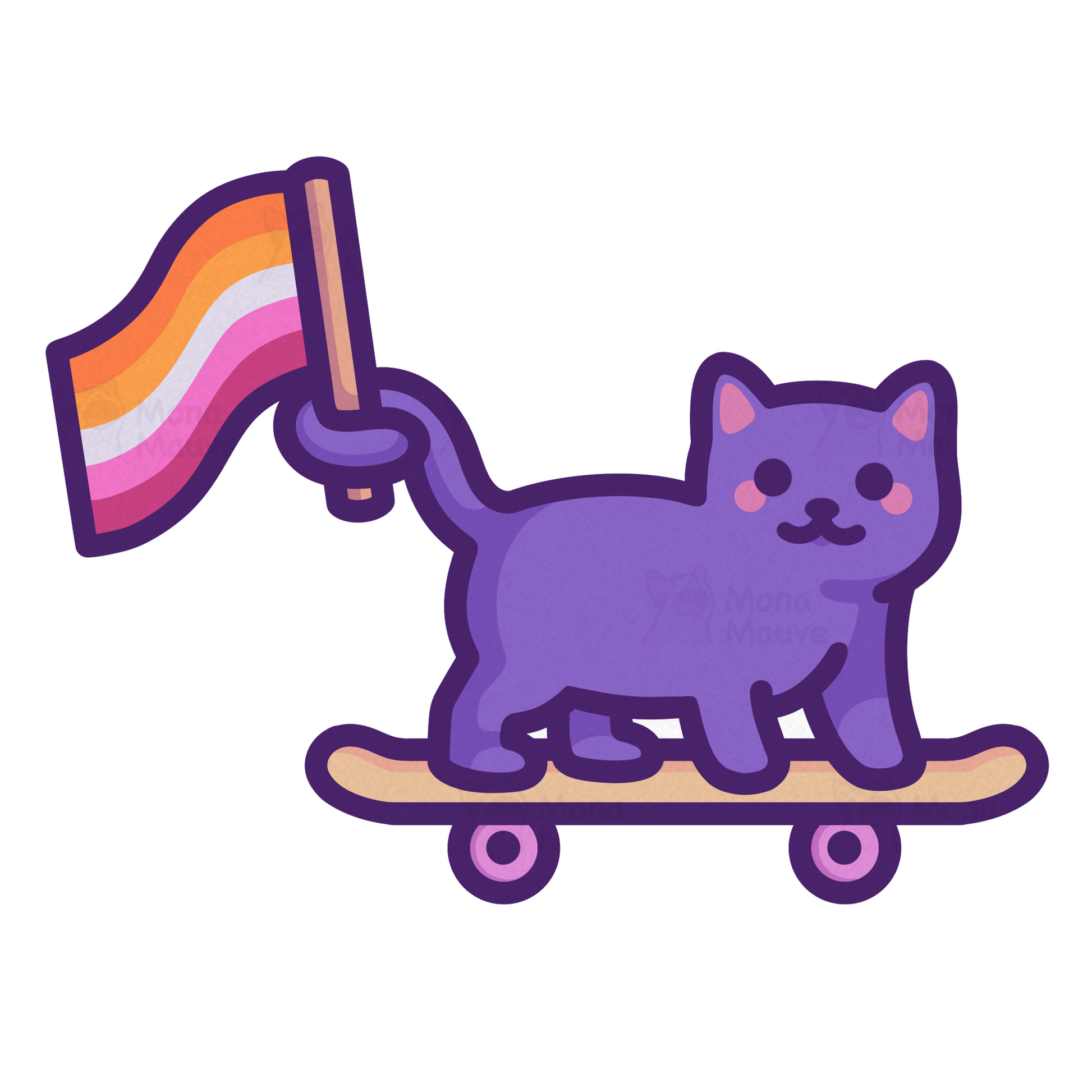 Lesbian Pride Sticker | LGBTQ+ Flag Cat on Skateboard