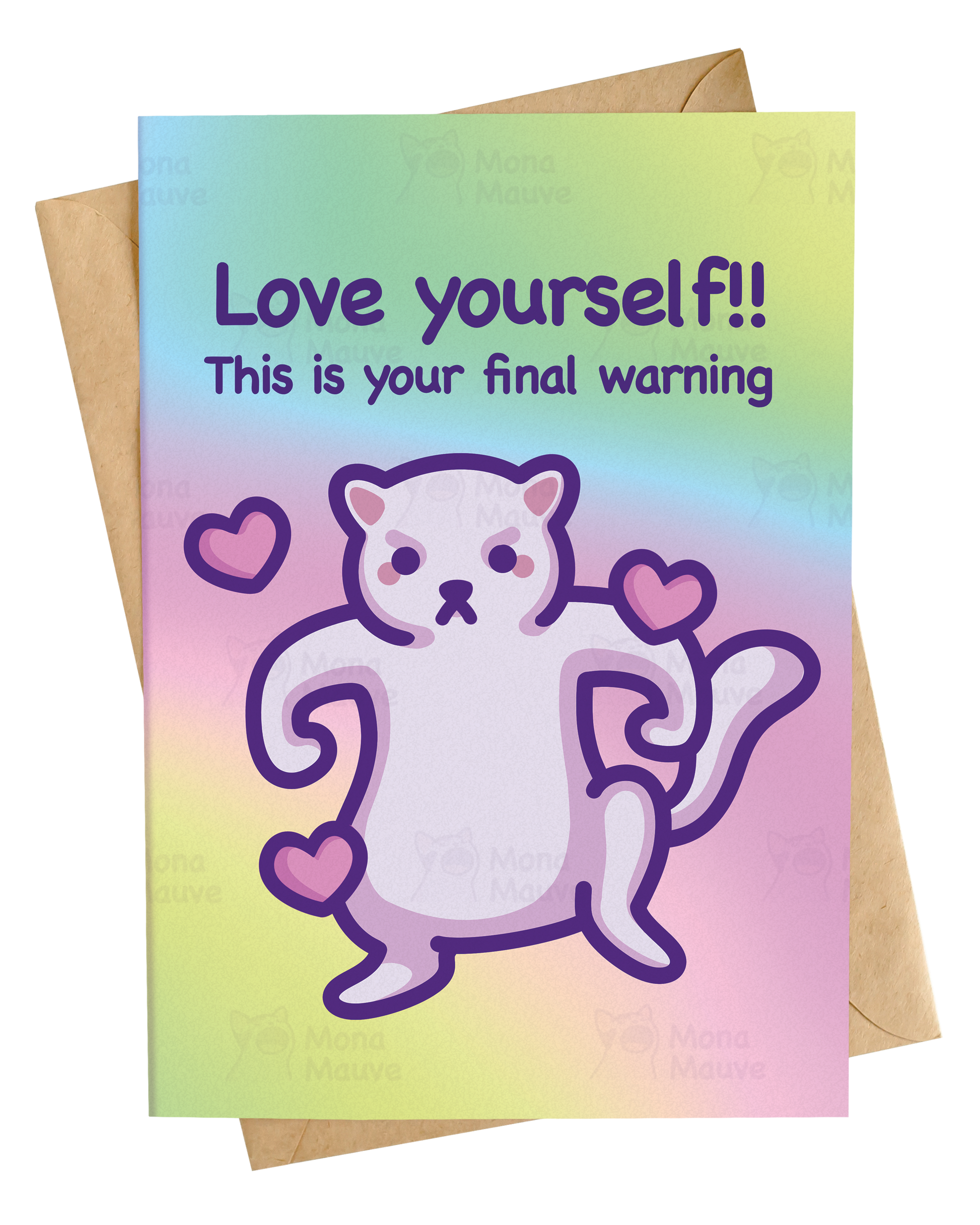 Love yourself, this is your final warning! An adorable and funny card for someone who forgets to appreciate themselves 😤💕