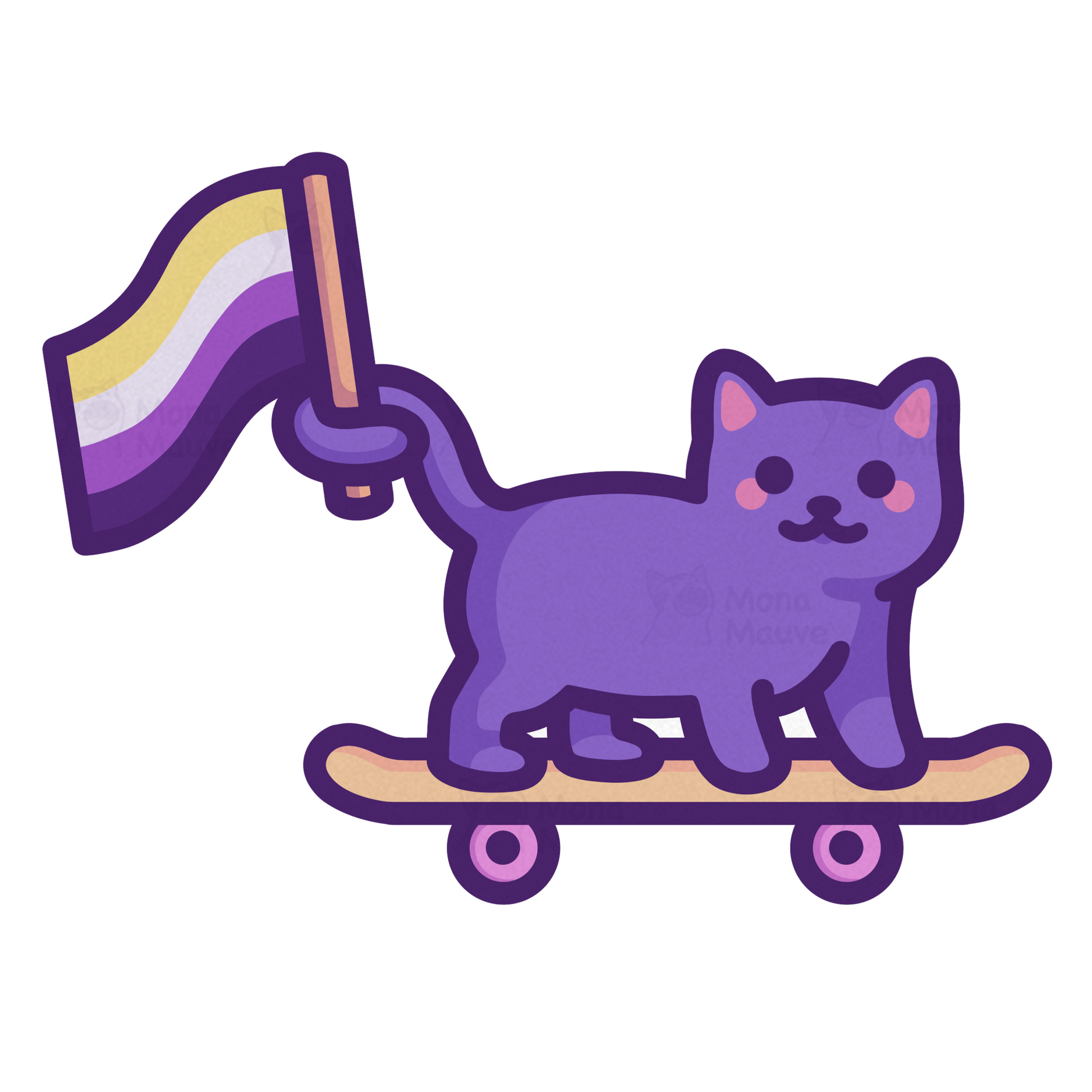Non Binary Pride Sticker | Enby Flag Cat on Skateboard