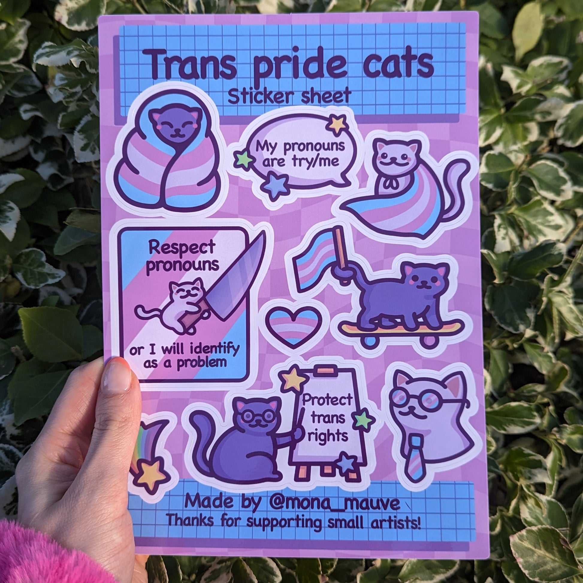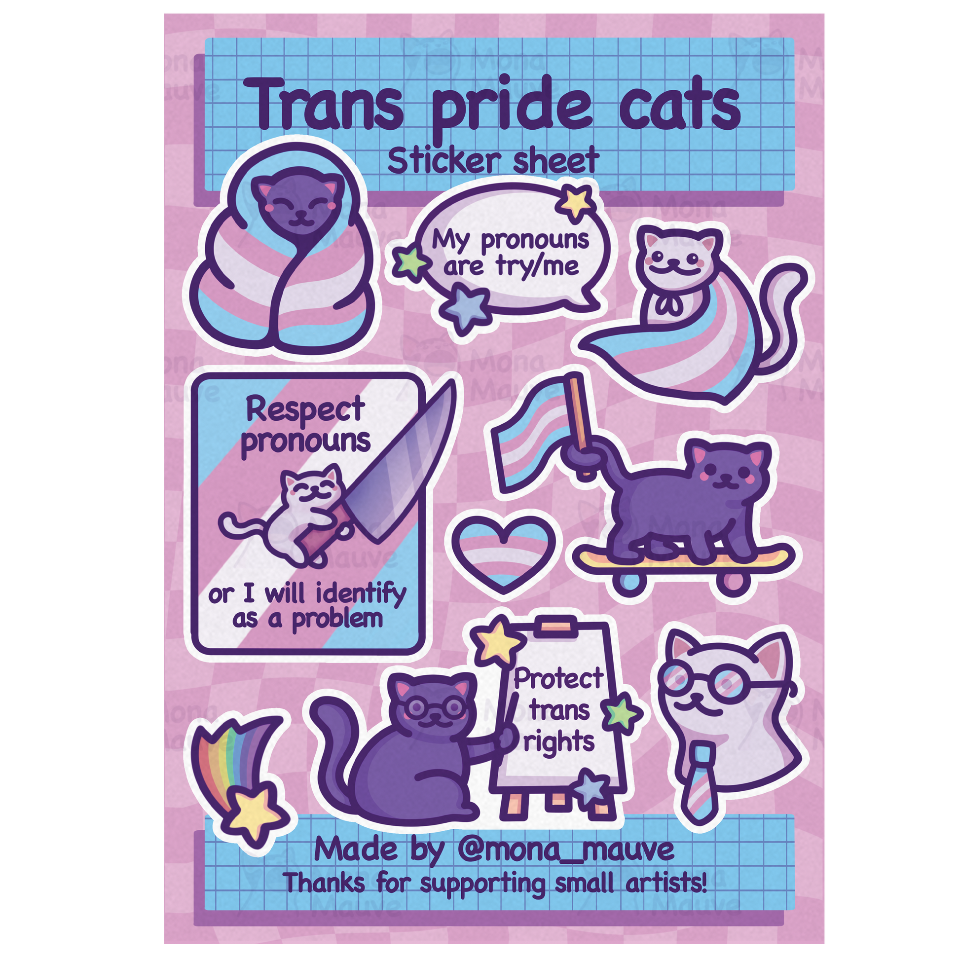 Trans Pride Cats Sticker Sheet | 9 Cute LGBTQ+ Vinyl & Waterproof Stickers