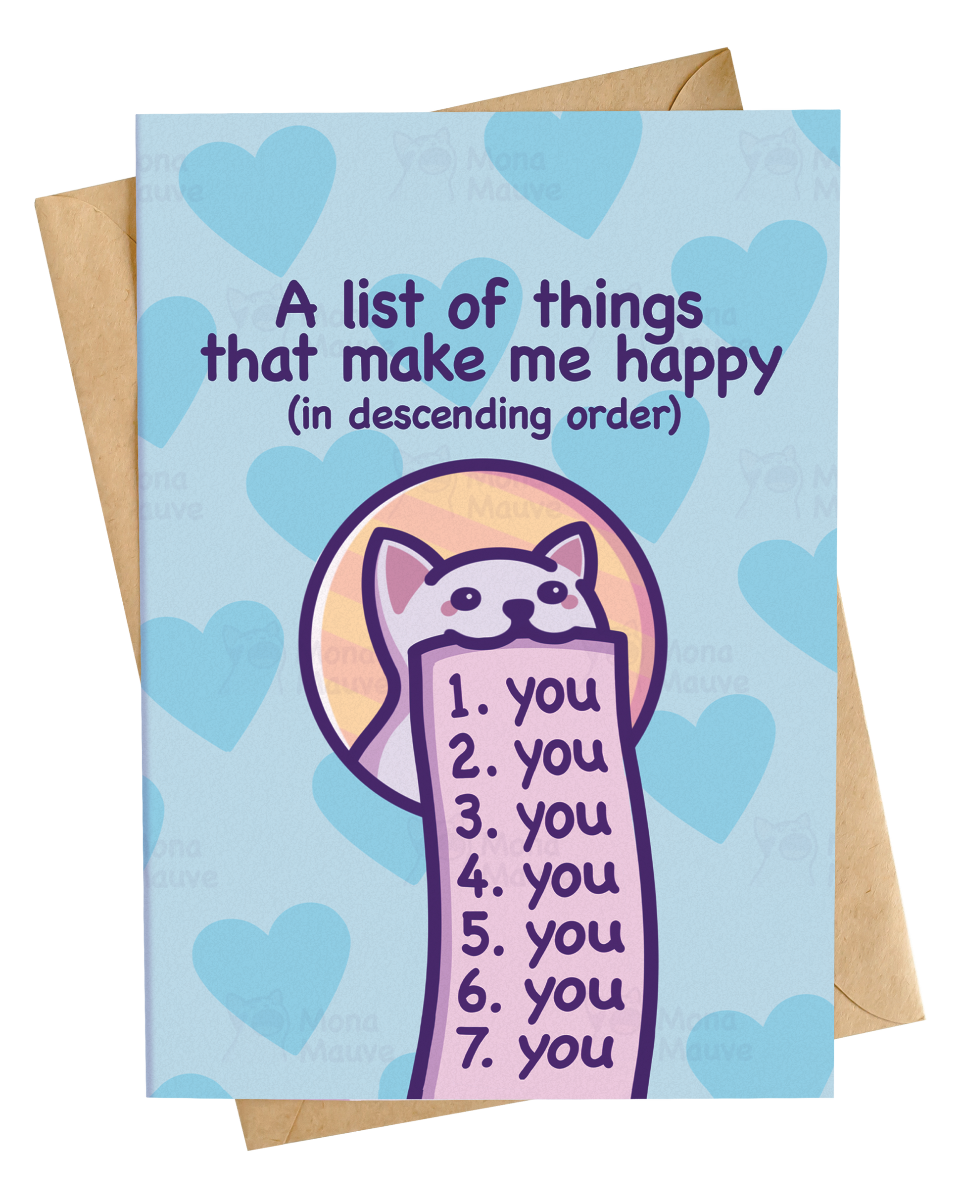 A List of Things That Make Me Happy (You)! | Wholesome Anniversary Card
